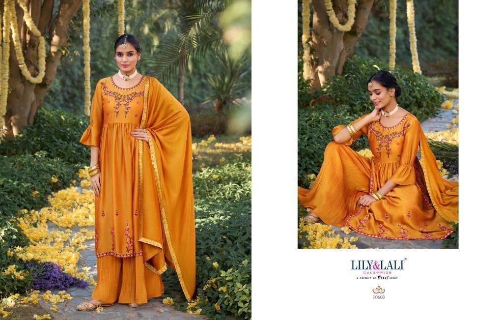 AAFREEN BY LILY & LALI DESIGNER WITH EMBROIDERY WORK SILK KURT WITH BOTTOM AND DUPATTA ARE AVAILABLE AT WHOLESALE PRICE
