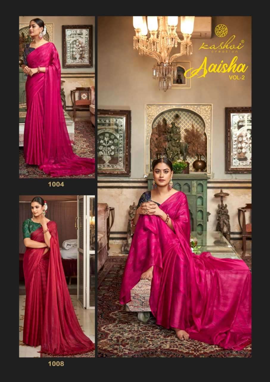 | Name: | kashvi-AAISHA VOL-2 SERIES 1001 TO 1008 SAREE BY KASHVI LT |