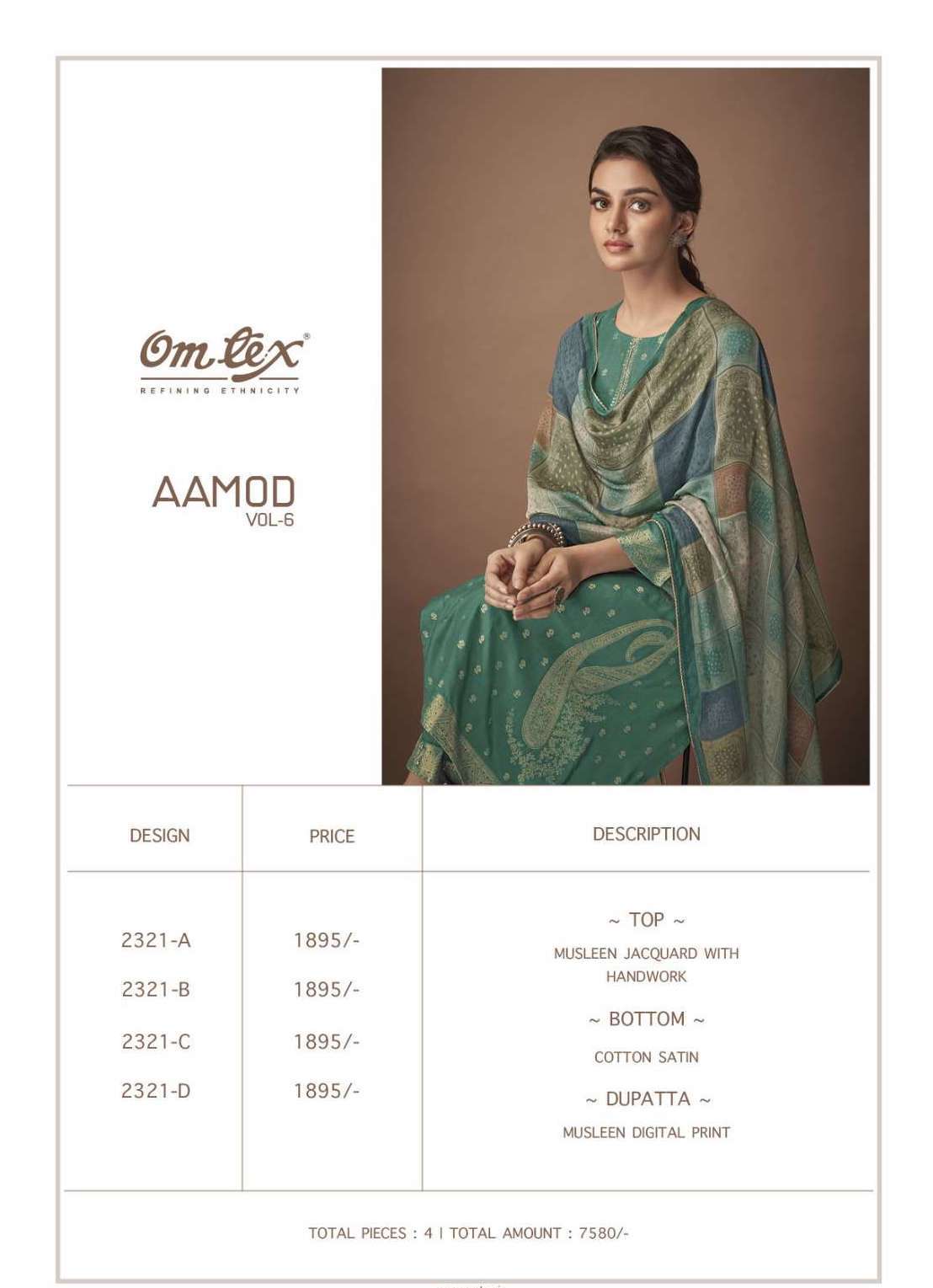| Catalog Rate: | ₹ 7580 ( 5 % GST Extra) |