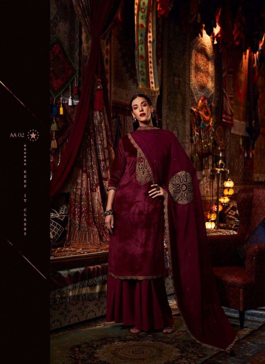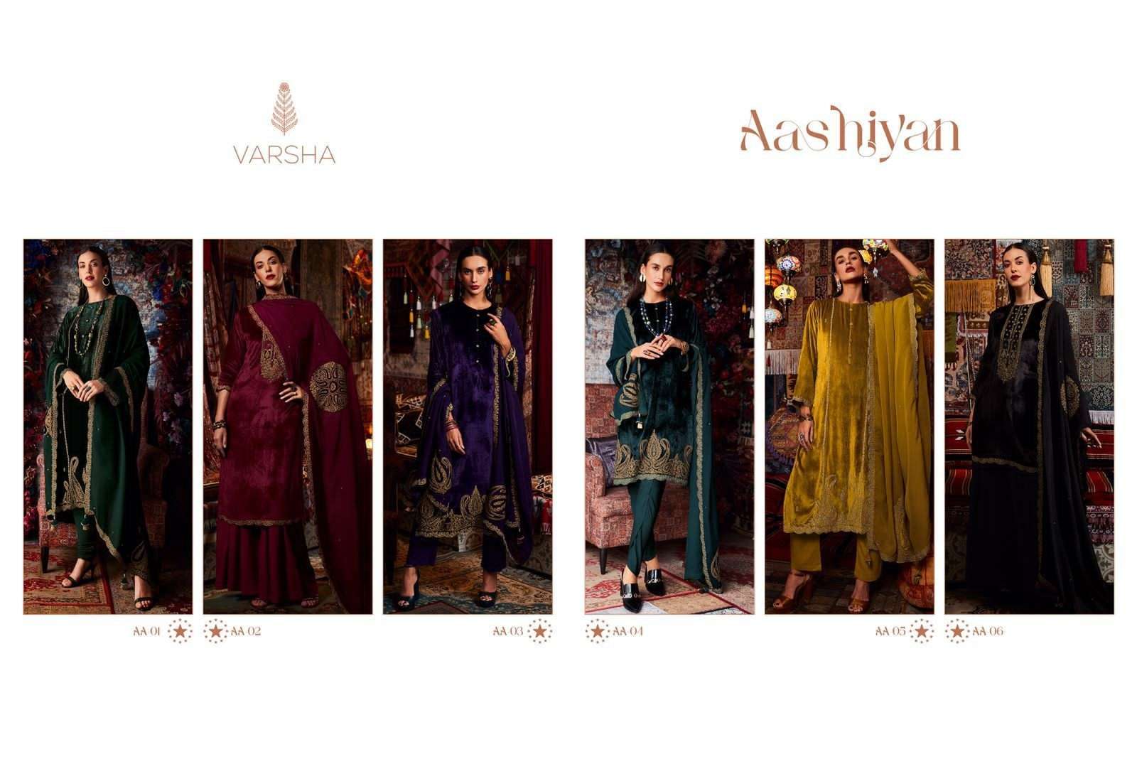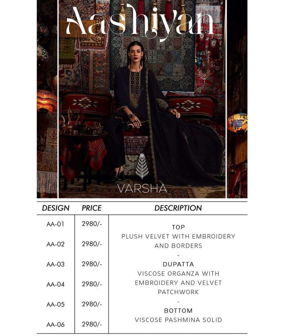 AASHIYAN BY VARSHA DESIGNER WITH WORK VELVET SUITS ARE AVAILABLE AT WHOLESALE PRICE