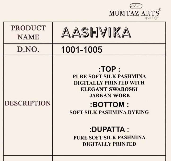 | Name: | mumtaz arts-AASHVIKA SERIES 1001 TO 1005 BY MUMTAZ ARTS |