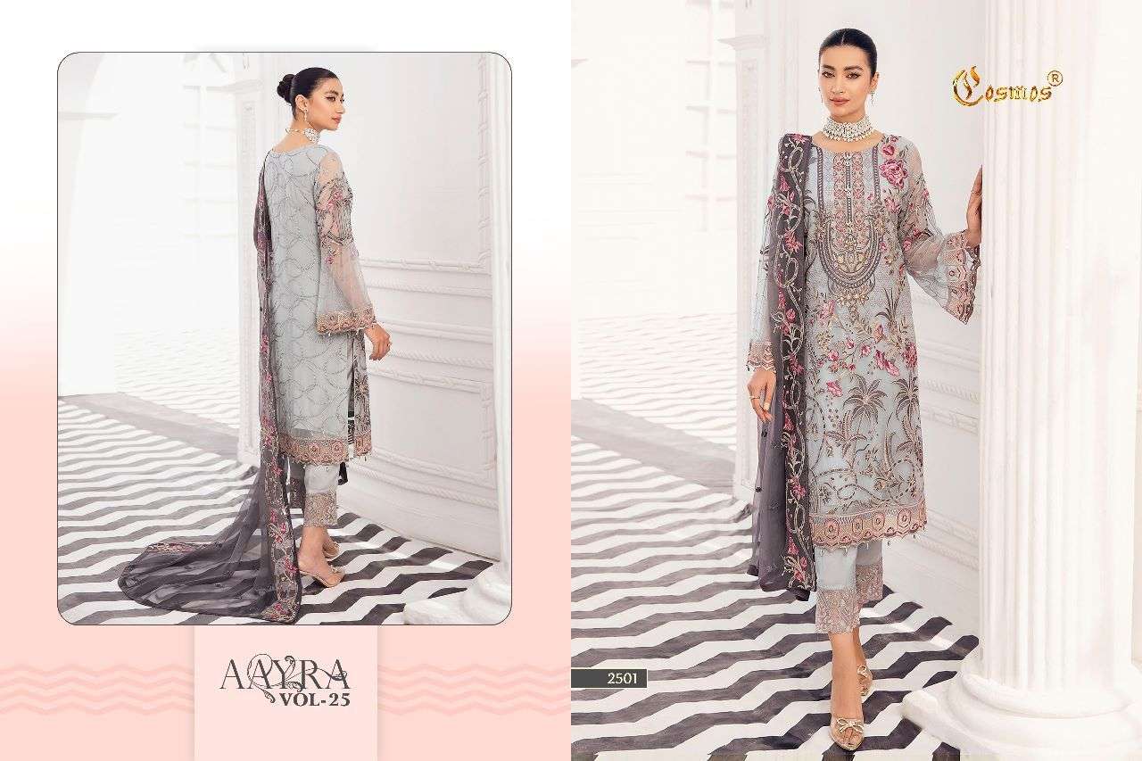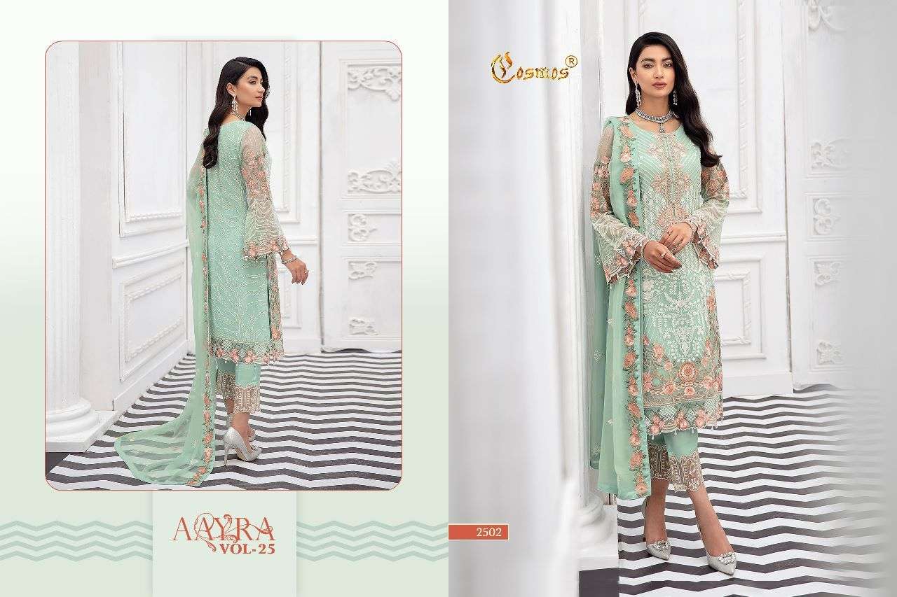 AAYRA VOL-25 BY COSMOS DESIGNER WITH WORK PAKISTANI STYLE GEORGETTE SUITS ARE AVAILABLE AT WHOLESALE PRICE
