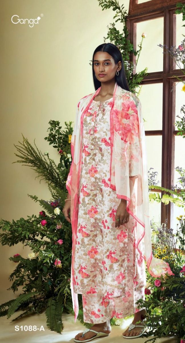Adhira S01088 By Ganga Designer With Printed Cotton Linen Suits Are Available At Wholesale Price