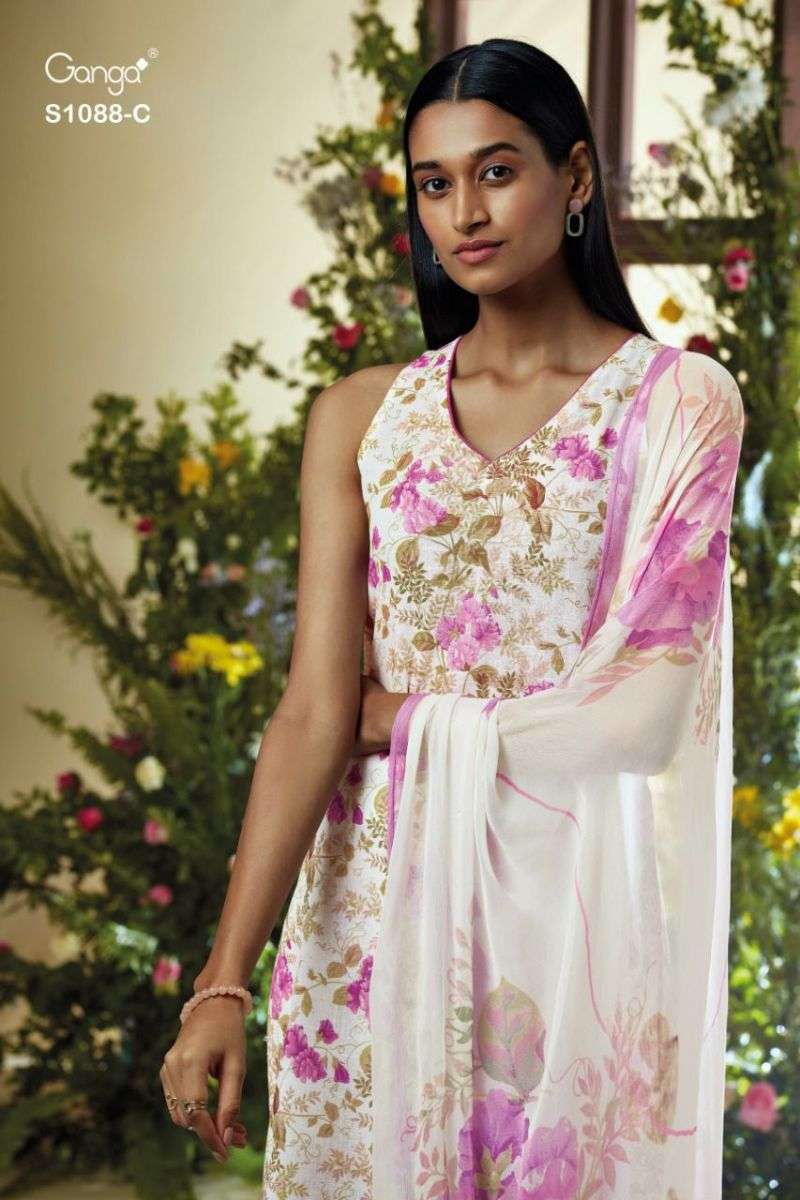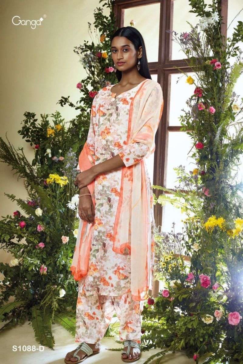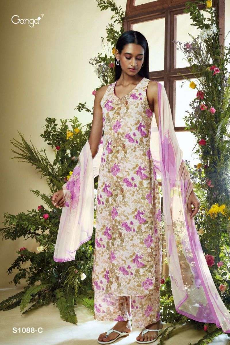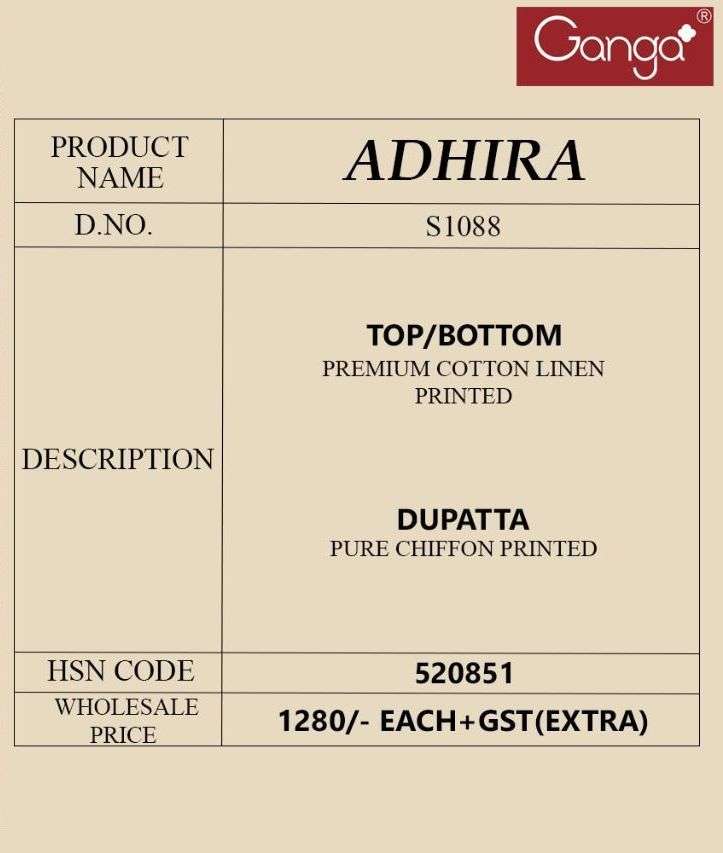ADHIRA S01O88 BY GANGA DESIGNER WITH PRINTED COTTON LINEN SUITS ARE AVAILABLE AT WHOLESALE PRICE