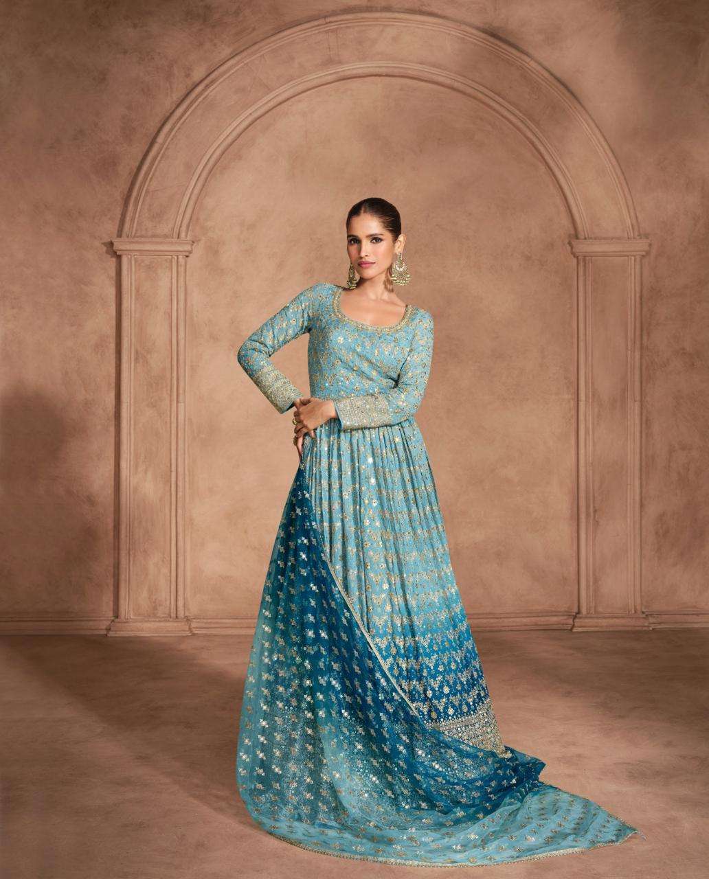 FABRIC - REAL GEROGETTE (FULL HEAVY LOOK EMBROIDERED DRESSES WITH EMBROIDERED NET DUPATTA)