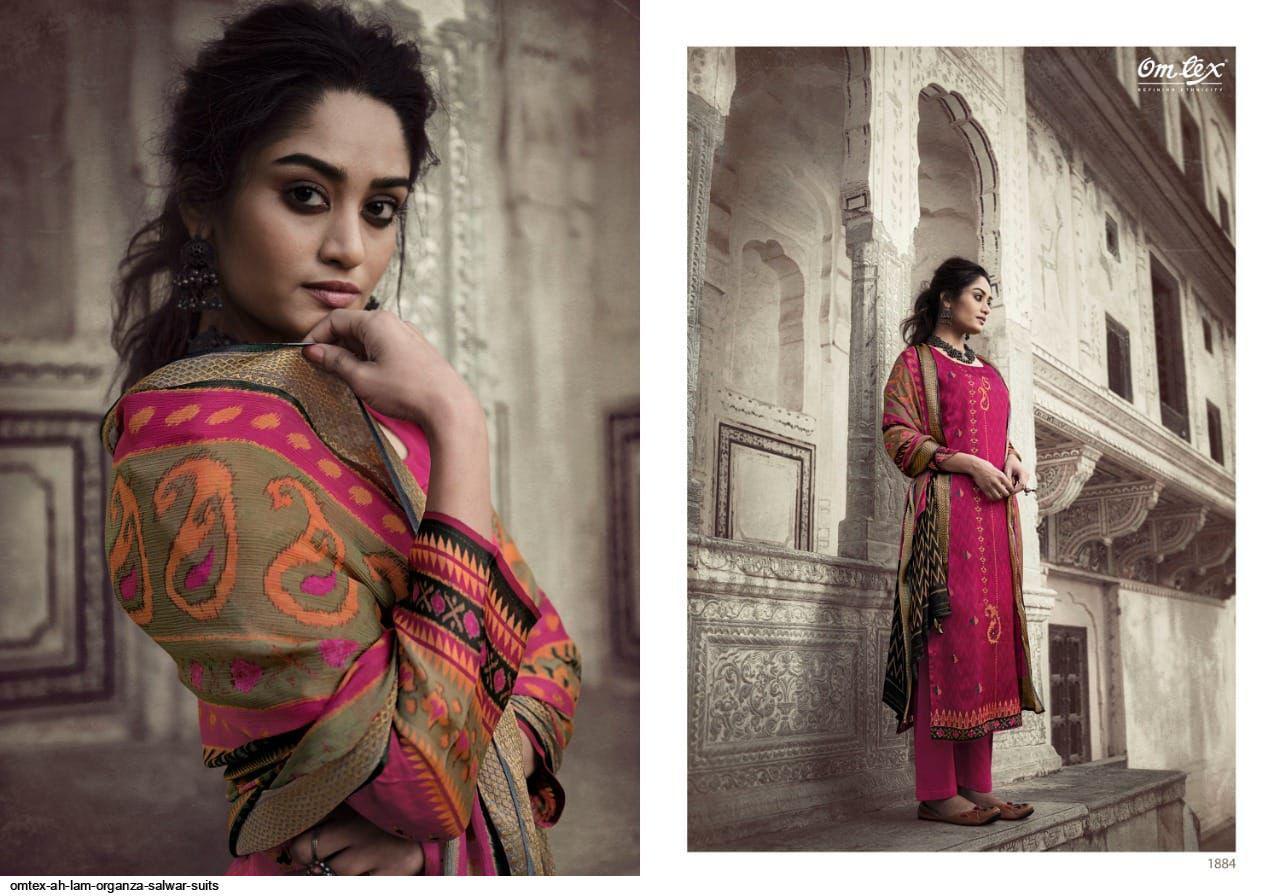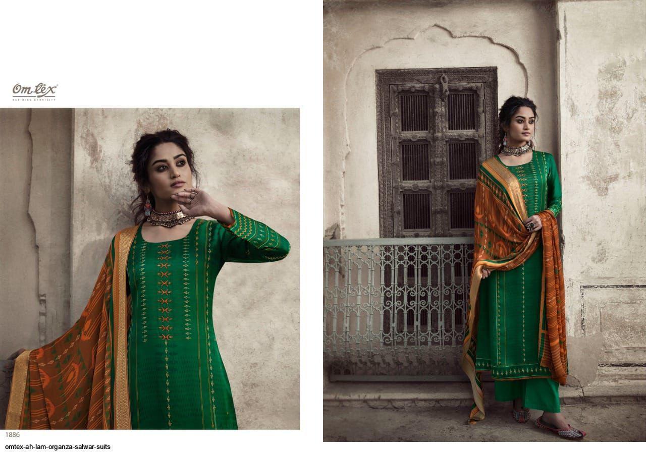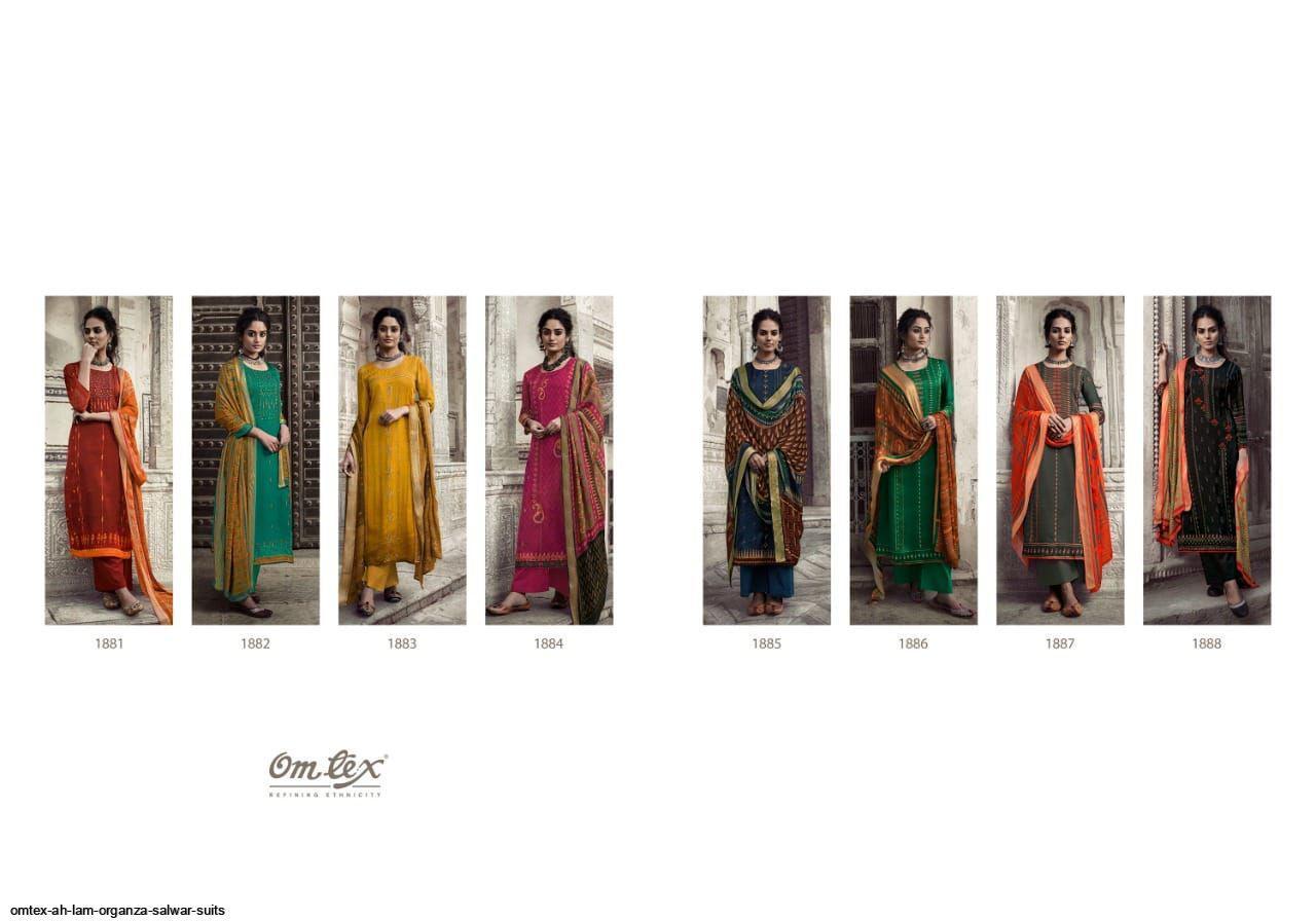 Ah Lam By Omtex Designer With Printed And Hand Work Organza Satin Silk Suits Are Available At Wholesale Price