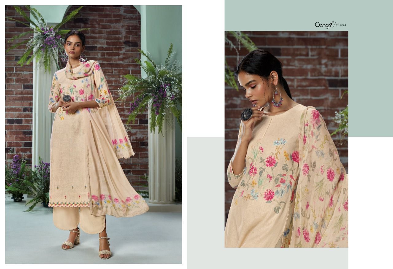 Aiyana By Ganga Designer With Printed And Embroidery Work Cotton Linen Suits Are Available At Wholesale Price