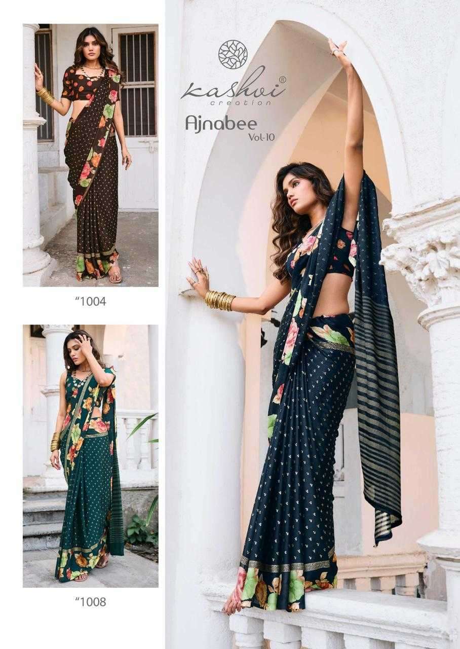 | Name: | kashvi-AJNABEE VOL-10 SERIES 1001 TO 1008 SAREE BY KASHVI |