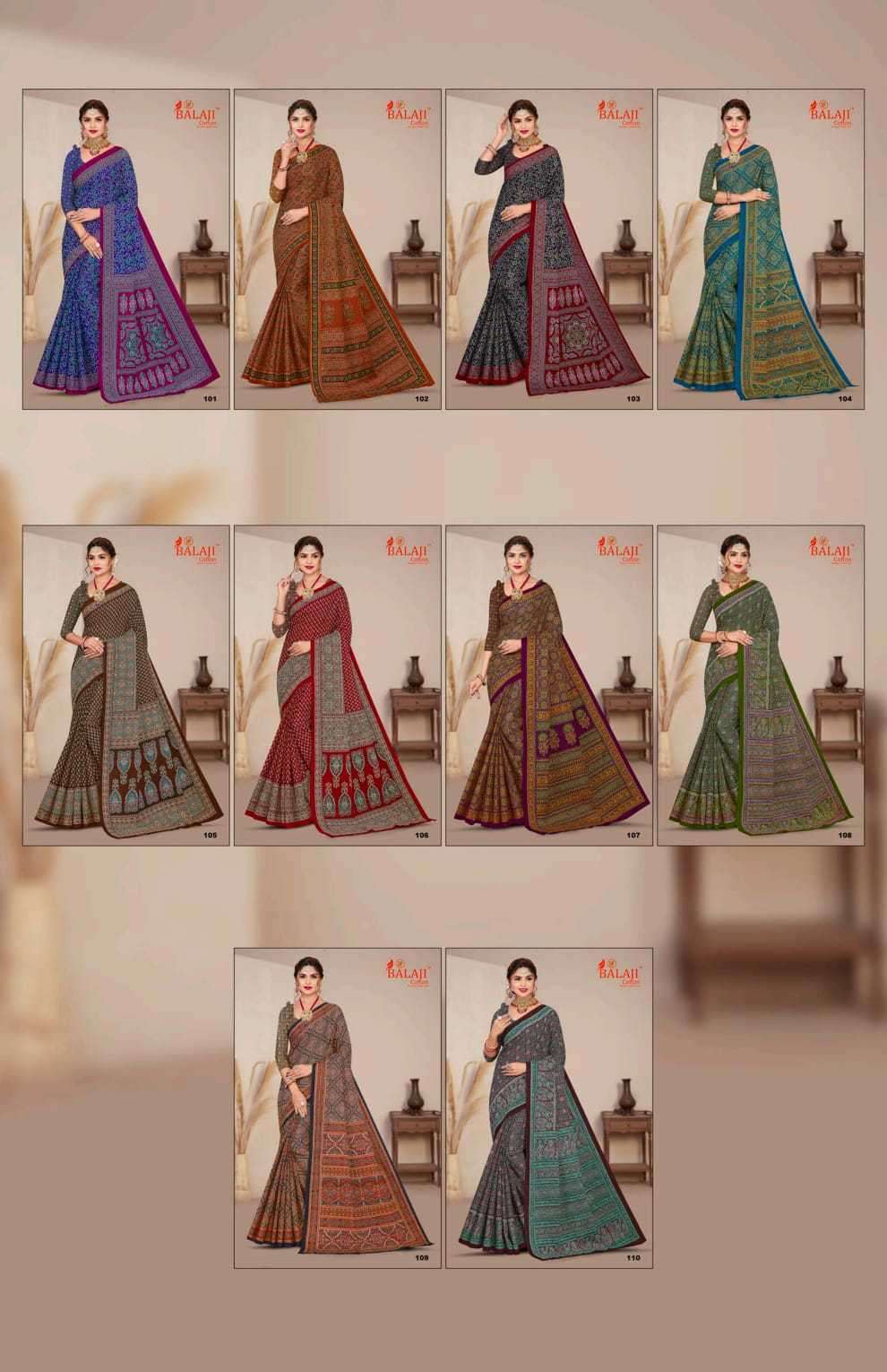 | Name: | balaji cotton-AJRAK MASLEEN VOL-1 SERIES 101 TO 110 SAREE BY BALAJI COTTON |
