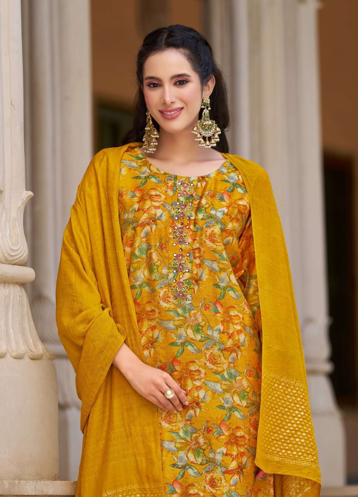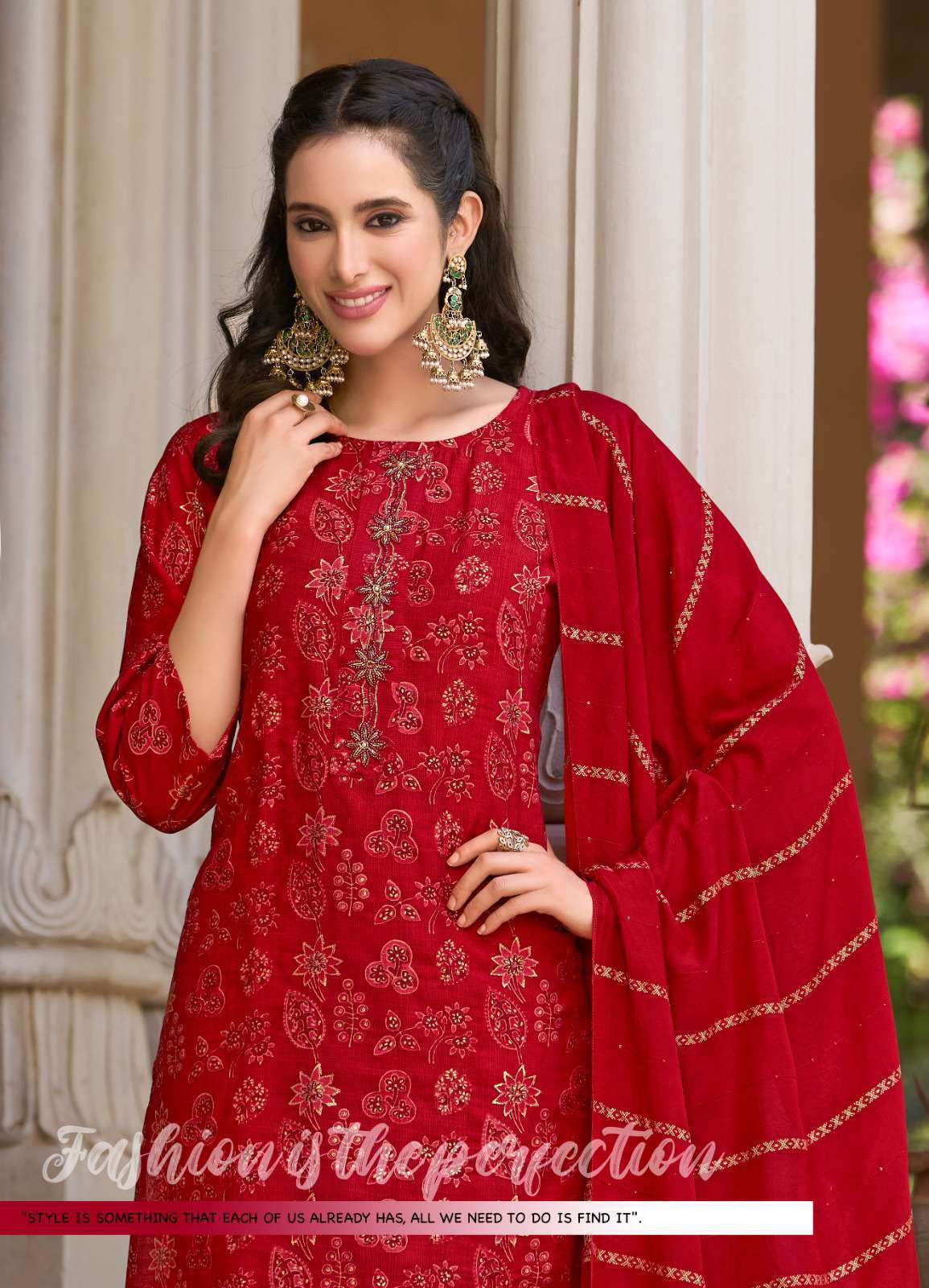 TOP PANT FABRIC - VERTICAN SILK FOIL PRINT WITH HAND WORK