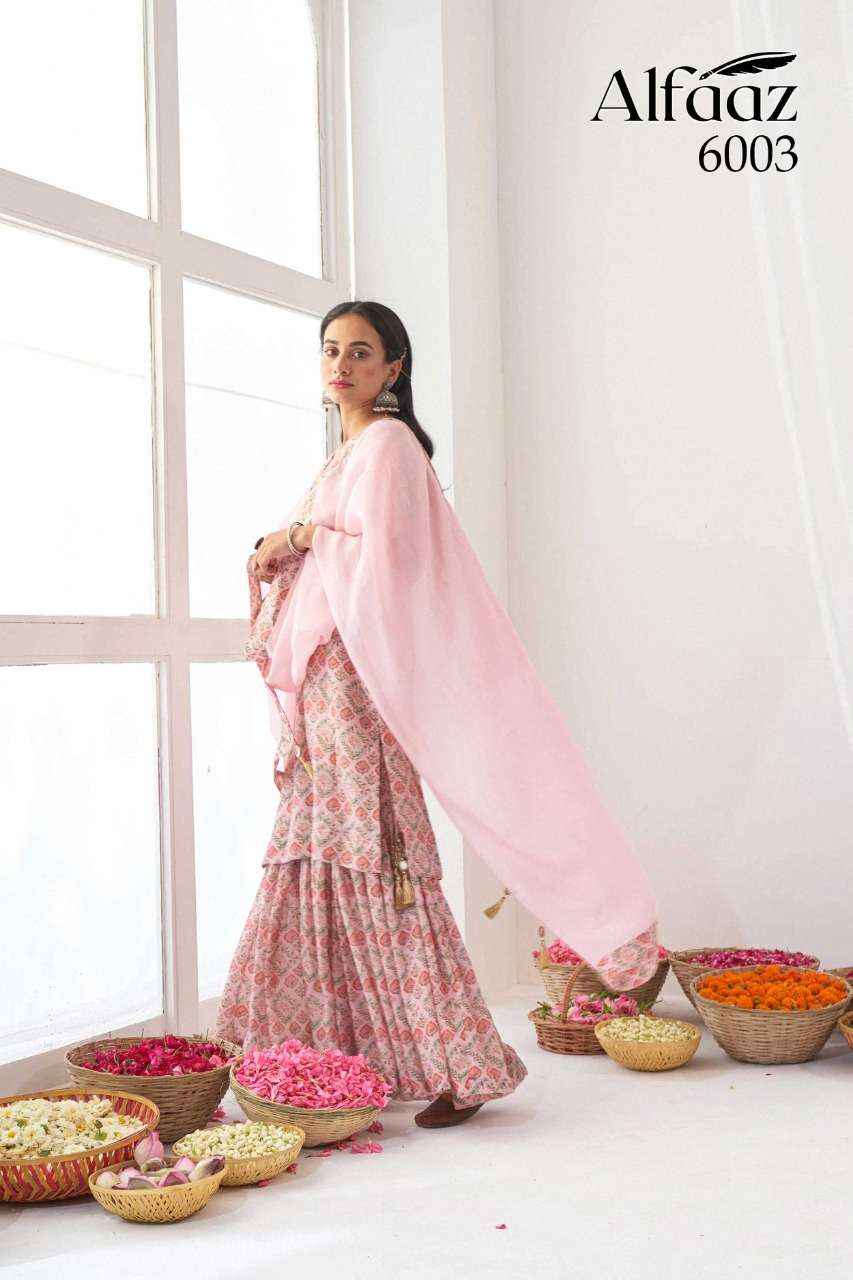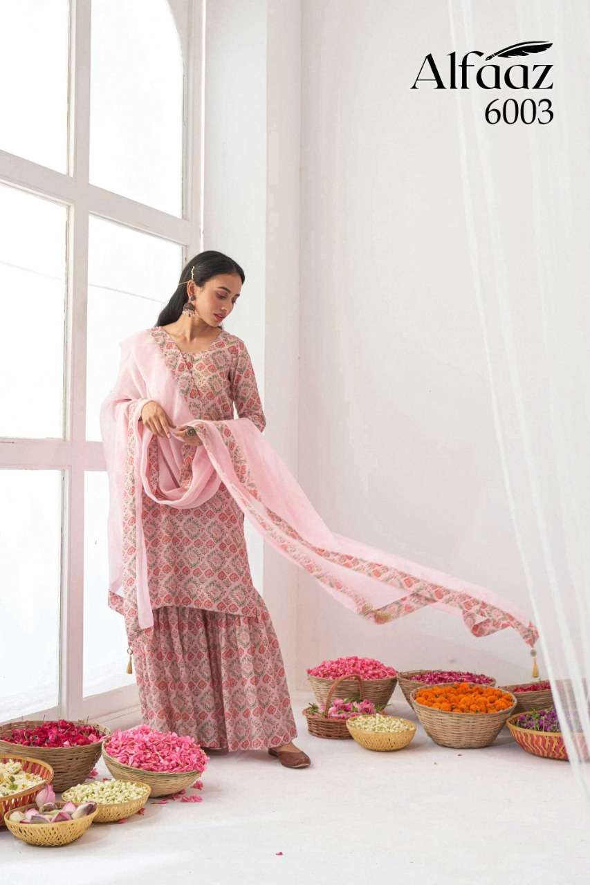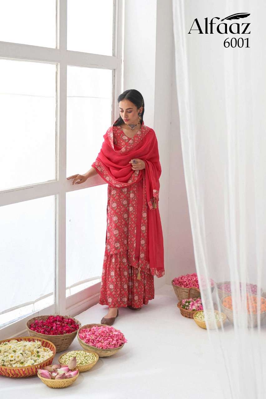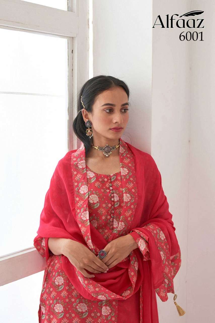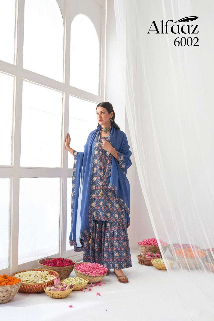 ALFAAZ VOL-6 BY VITARA DESIGNER WITH PRINTED AND WORK MUSLIN TOP WITH BOTTOM AND DUPATTA ARE AVAILABLE AT WHOLESALE PRICE