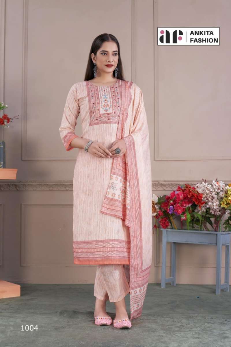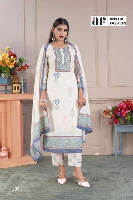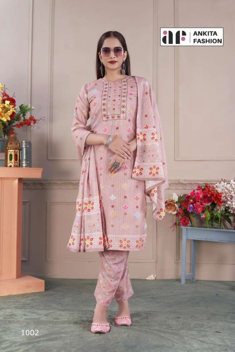 ALISHA VOL-2 KURTI BY ANKITA FASHION DESIGNER WITH PRINTED AND WORK MUSLIN KURTI WITH PANT AND DUPATTA ARE AVAILABLE AT WHOLESALE PRICE