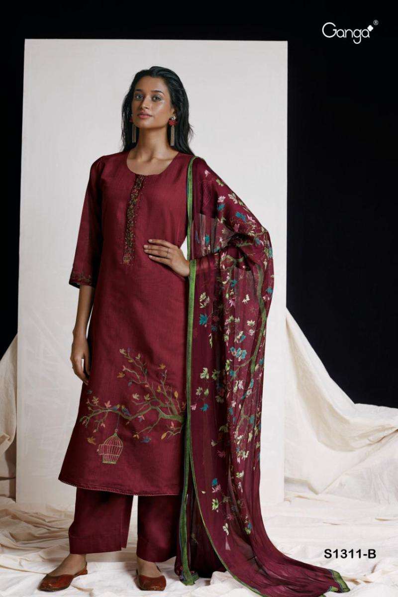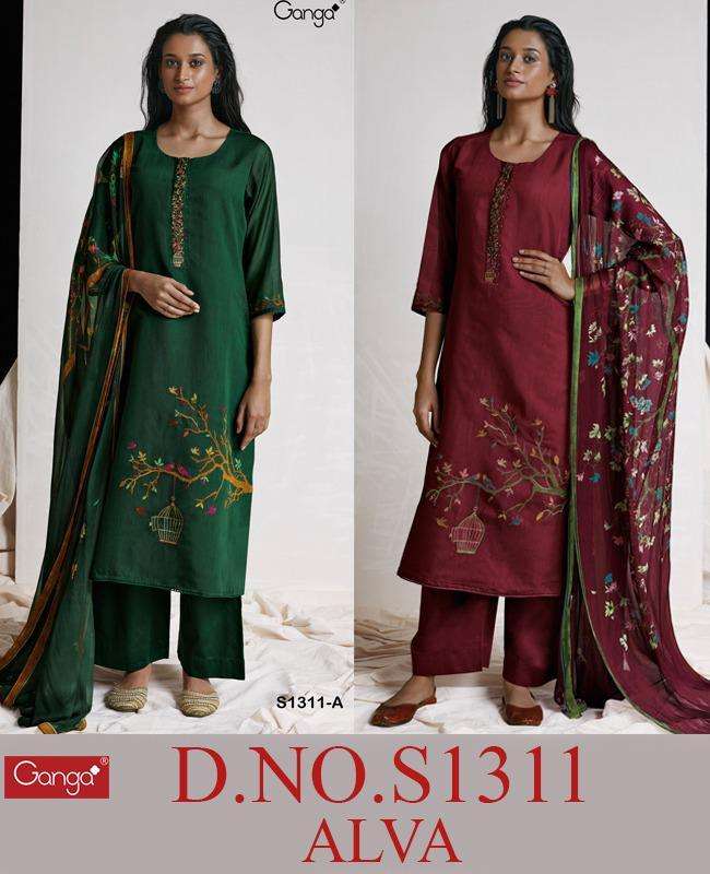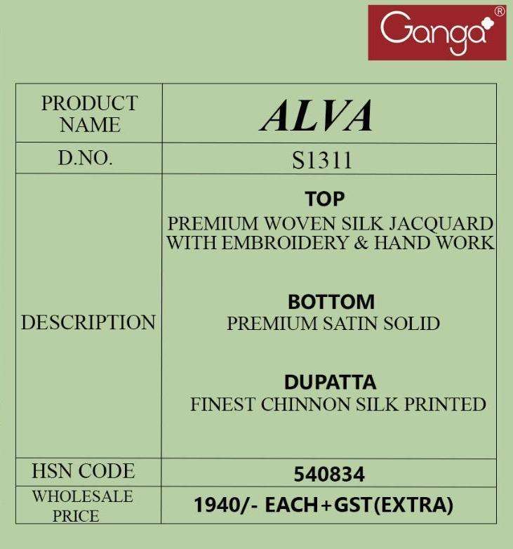 ALVA S1311 BY GANGA DESIGNER WITH WORK WOVEN SILK JACQUARD SUITS ARE AVAILABLE AT WHOLESALE PRICE