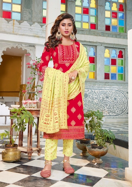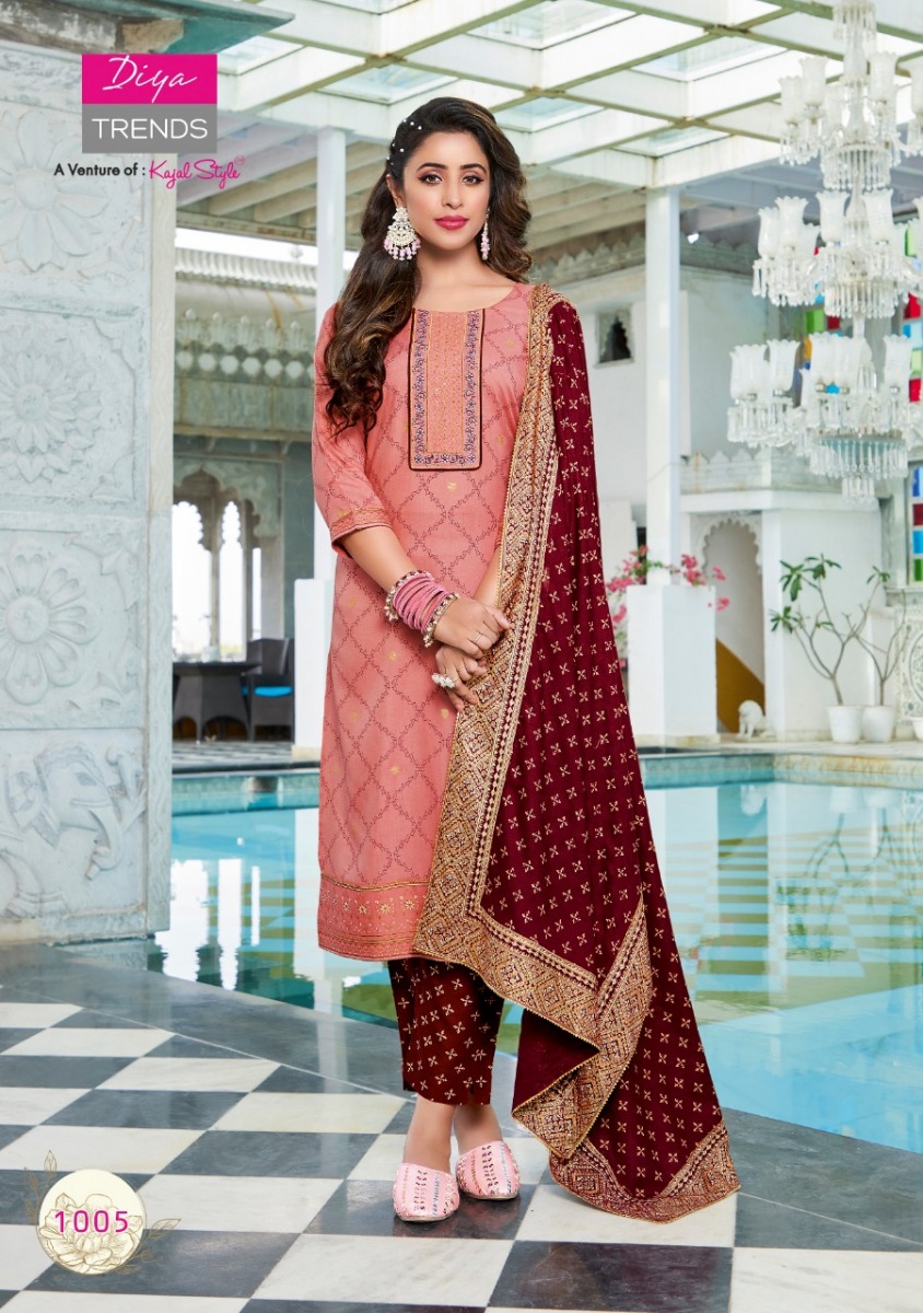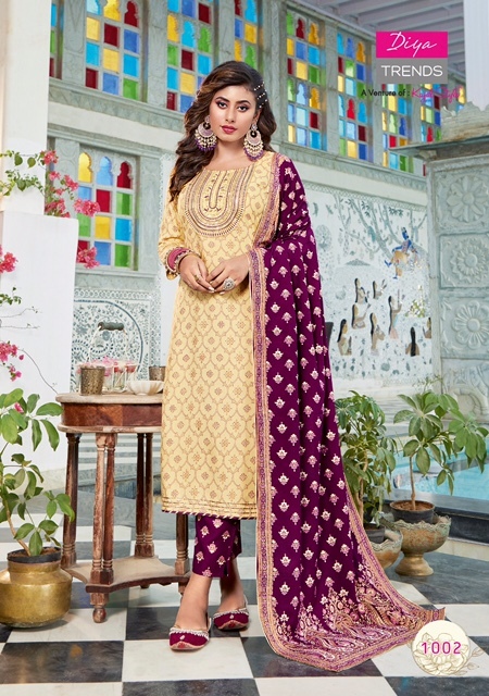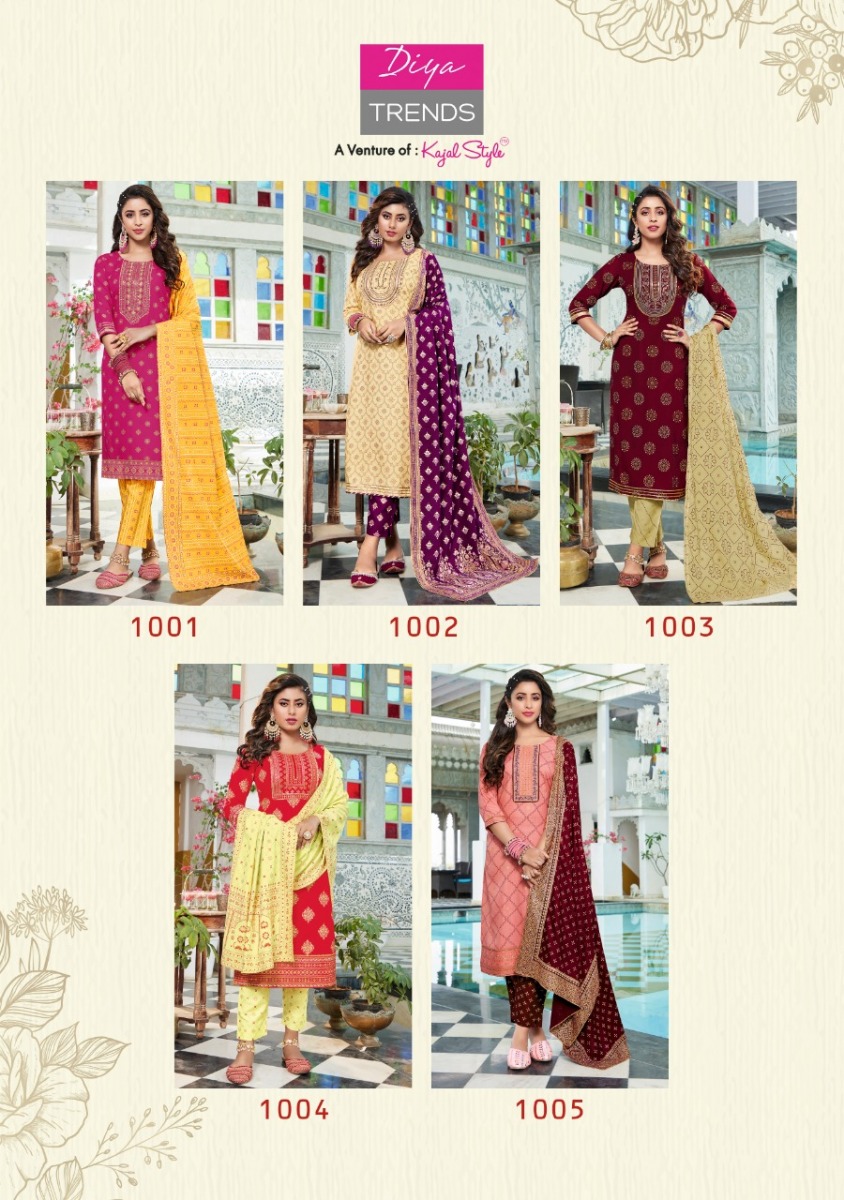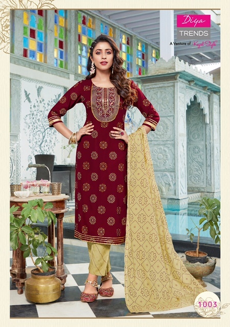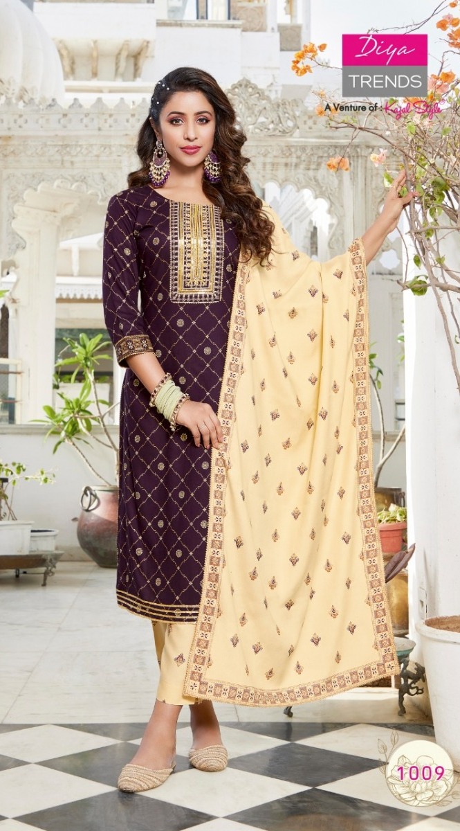 Alveera Vol-1 Kurti By Diya Trends Designer With Printed Rayon Kurti With Bottom And Dupatta Are Available At Wholesale Price