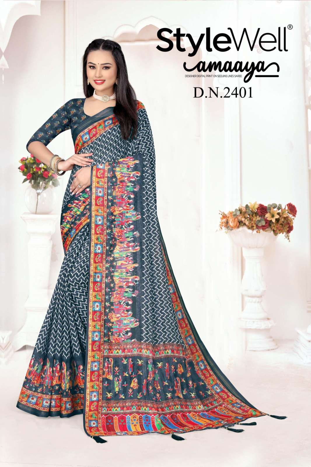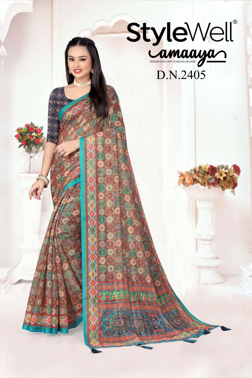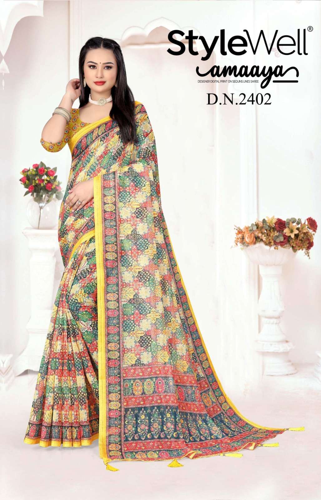 AMAAYA SAREE BY STYLEWELL DESIGNER WITH PRINTED AND WORK LINEN SAREES ARE AVAILABLE AT WHOLESALE PRICE