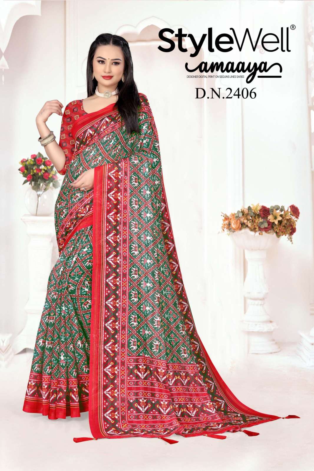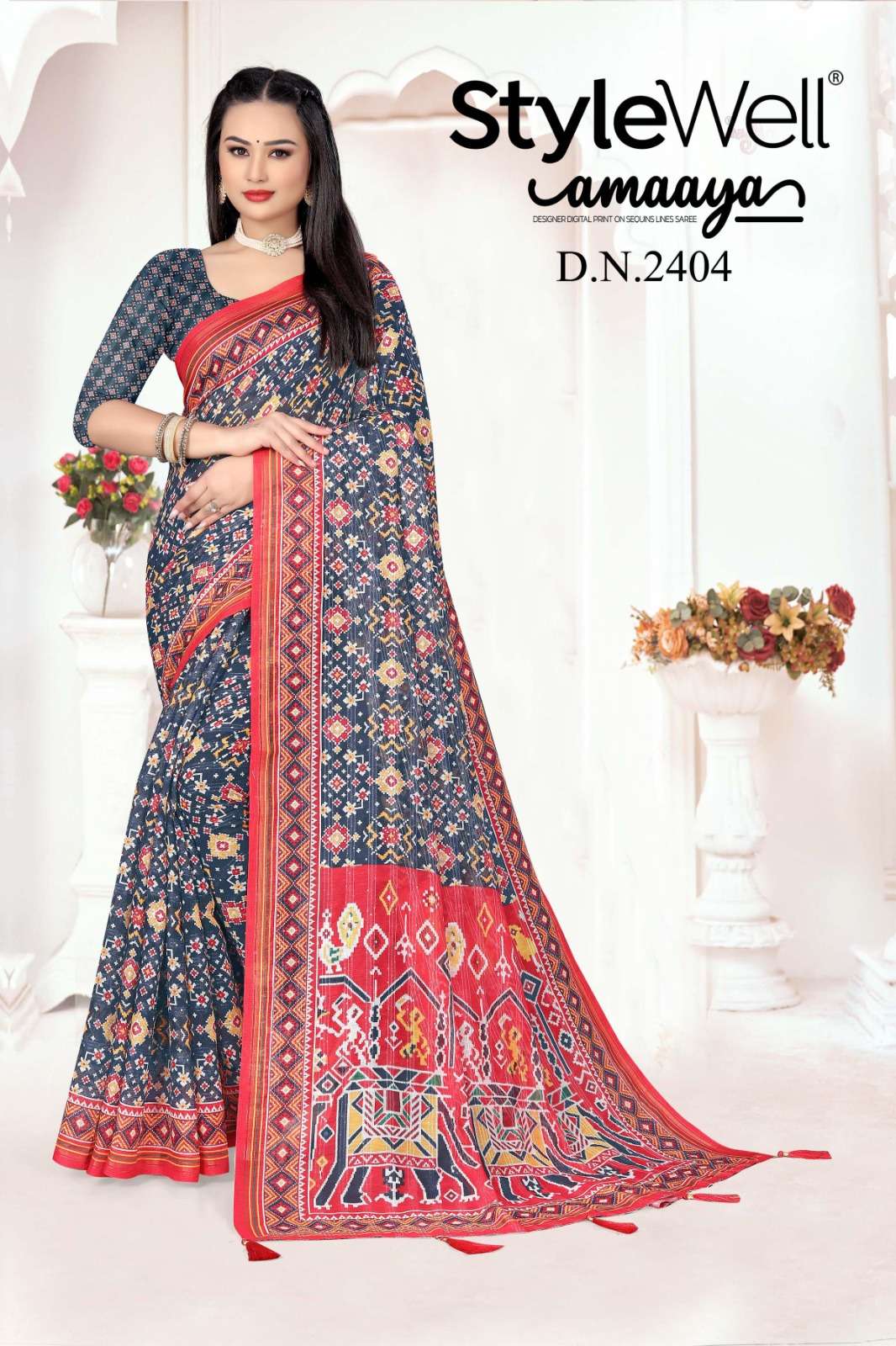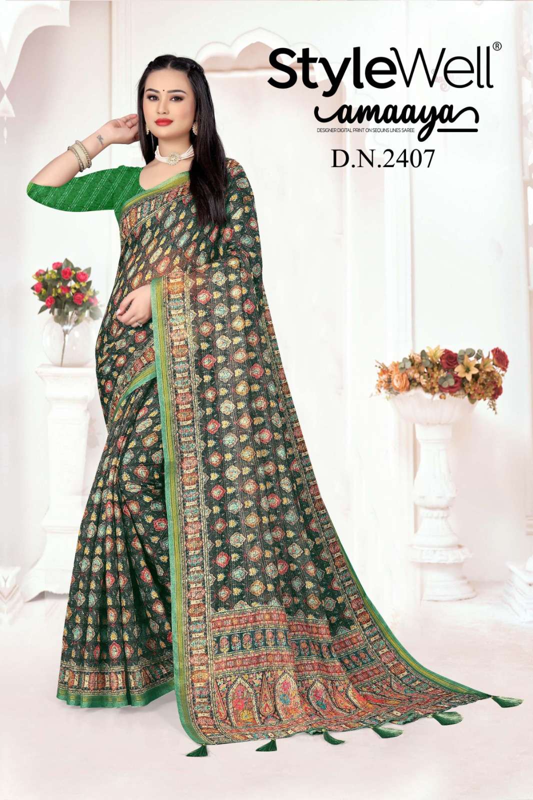 AMAAYA SAREE BY STYLEWELL DESIGNER WITH PRINTED AND WORK LINEN SAREES ARE AVAILABLE AT WHOLESALE PRICE