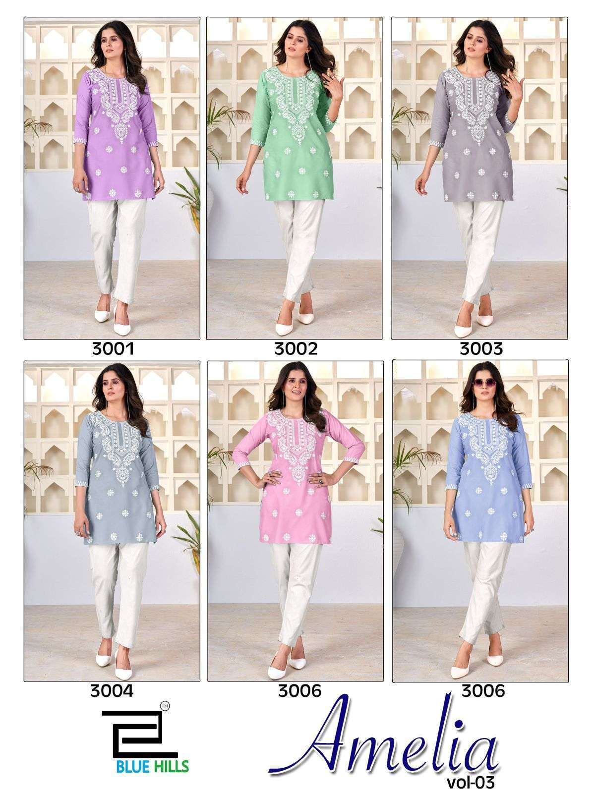 | Name: | blue hills-AMELIA VOL-3 SERIES 3001 TO 3006 KURTI BY BLUE HILLS |