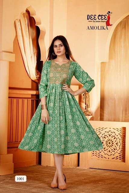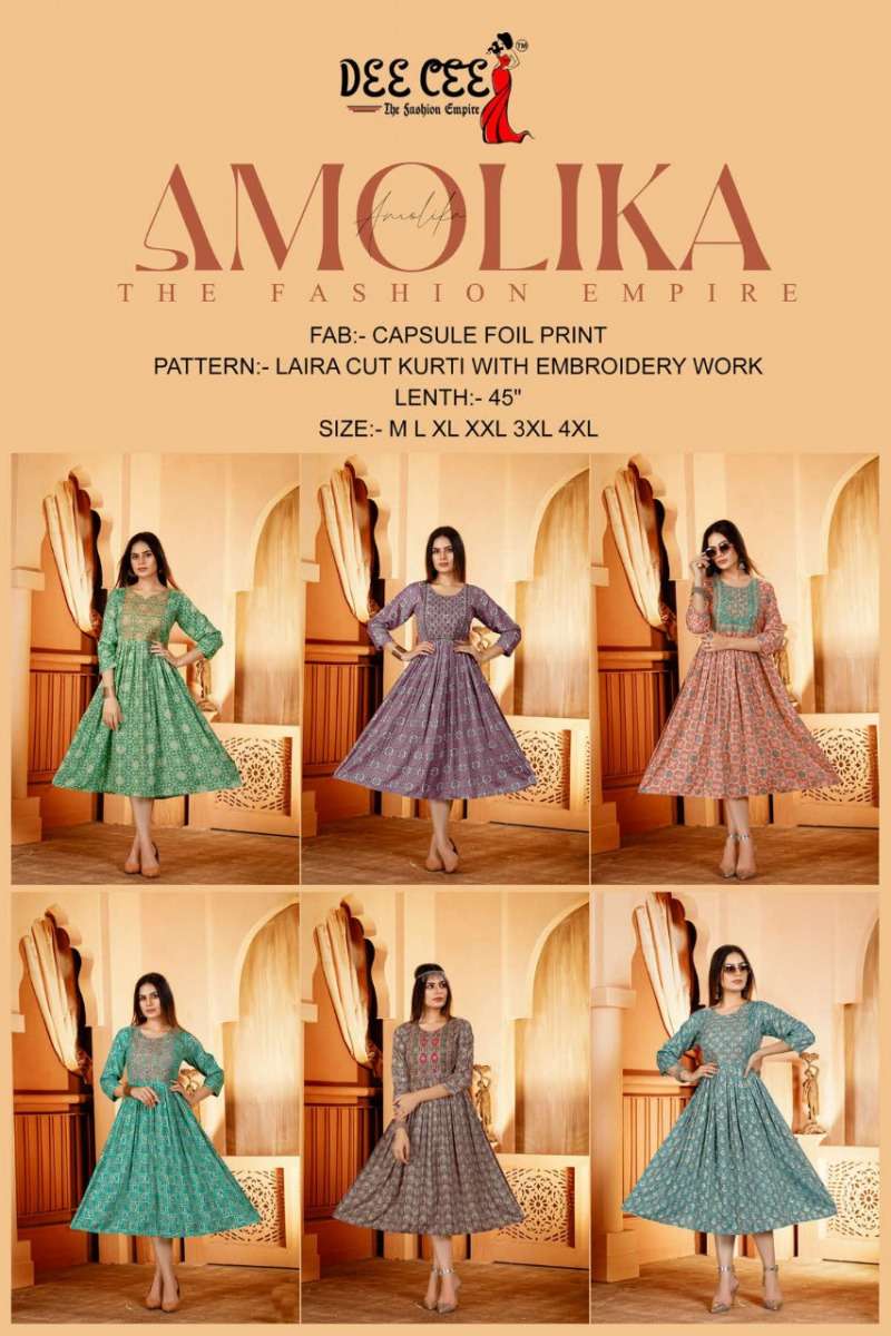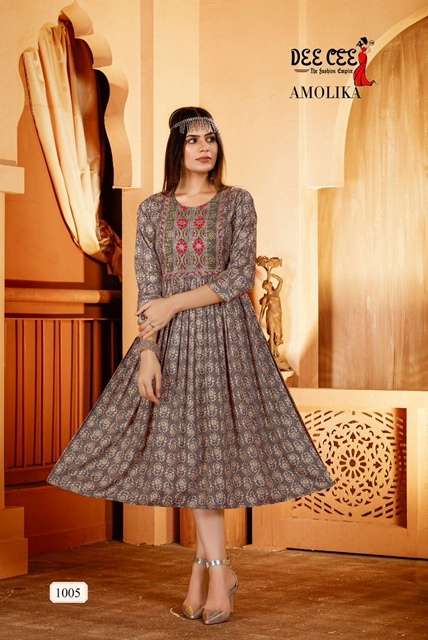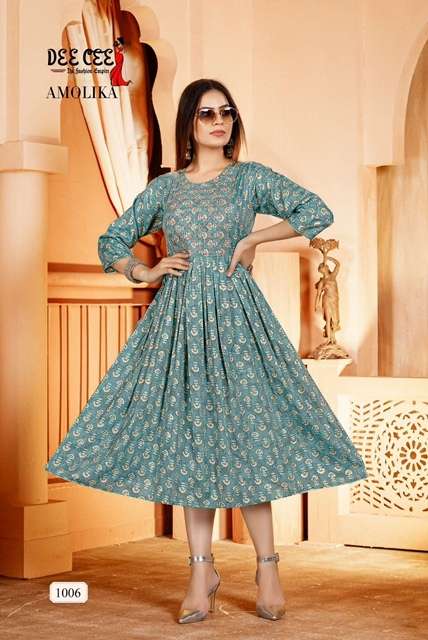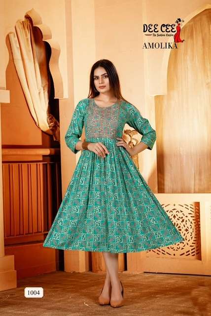 AMOLIKA KURTI BY DEE CEE DESIGNER WITH FOIL PRINTED NYRA CUT KURTIS ARE AVAILABLE AT WHOLESALE PRICE