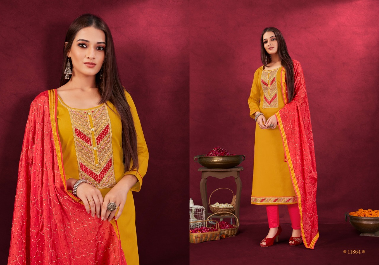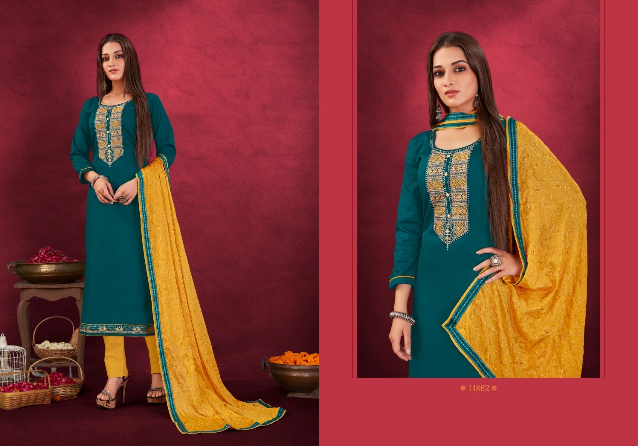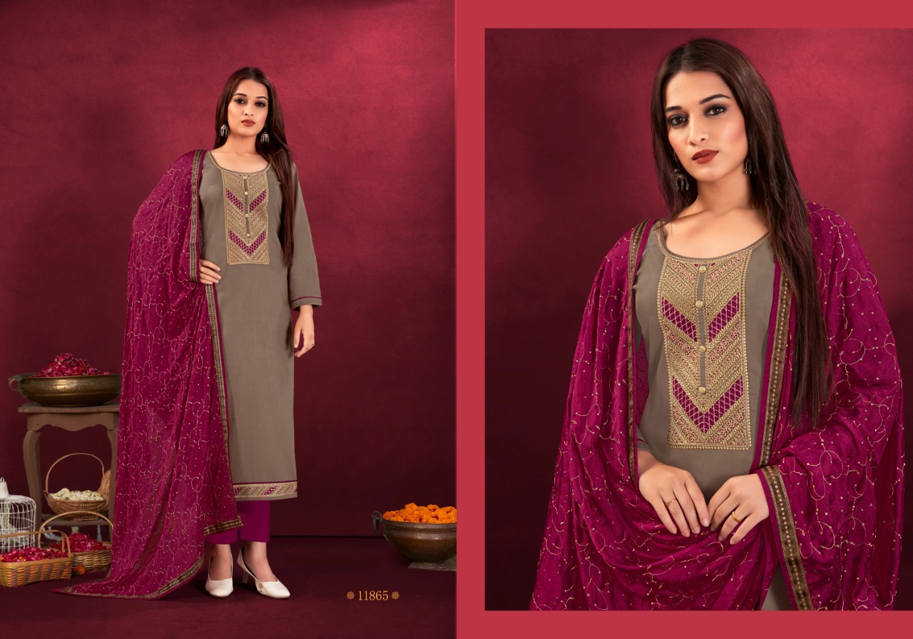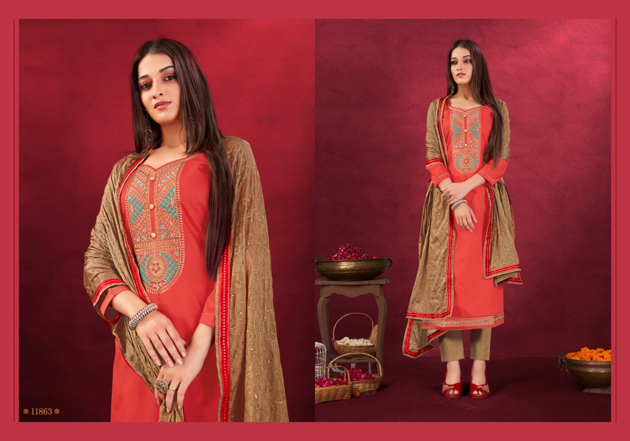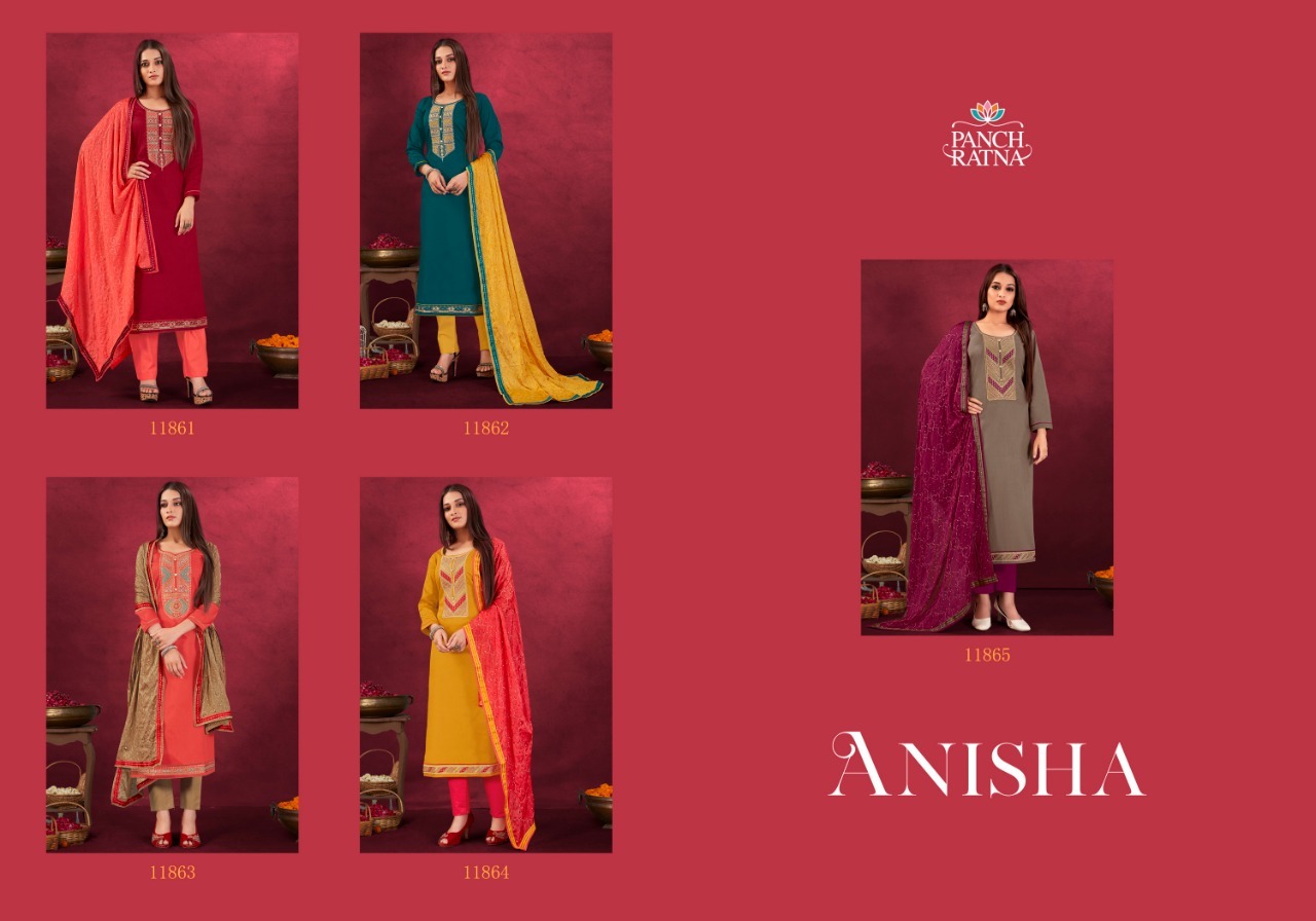 Anisha By Panch Ratna Designer With Embroidery Work Jam Silk Cotton Suits Are Available At Wholesale Price