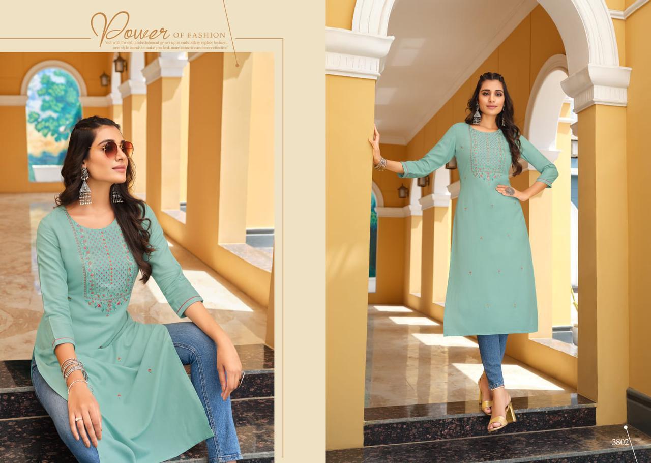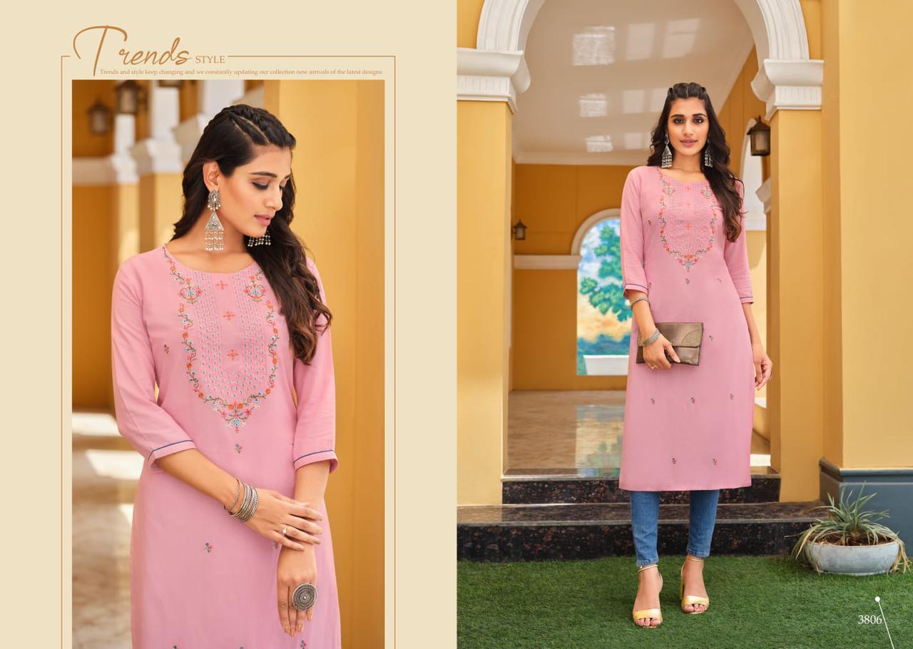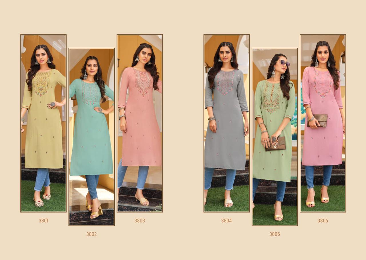 Anishka Kurti By Rangoon Designer With Embroidery Work Rayon Long Kurtis Are Available At Wholesale Price