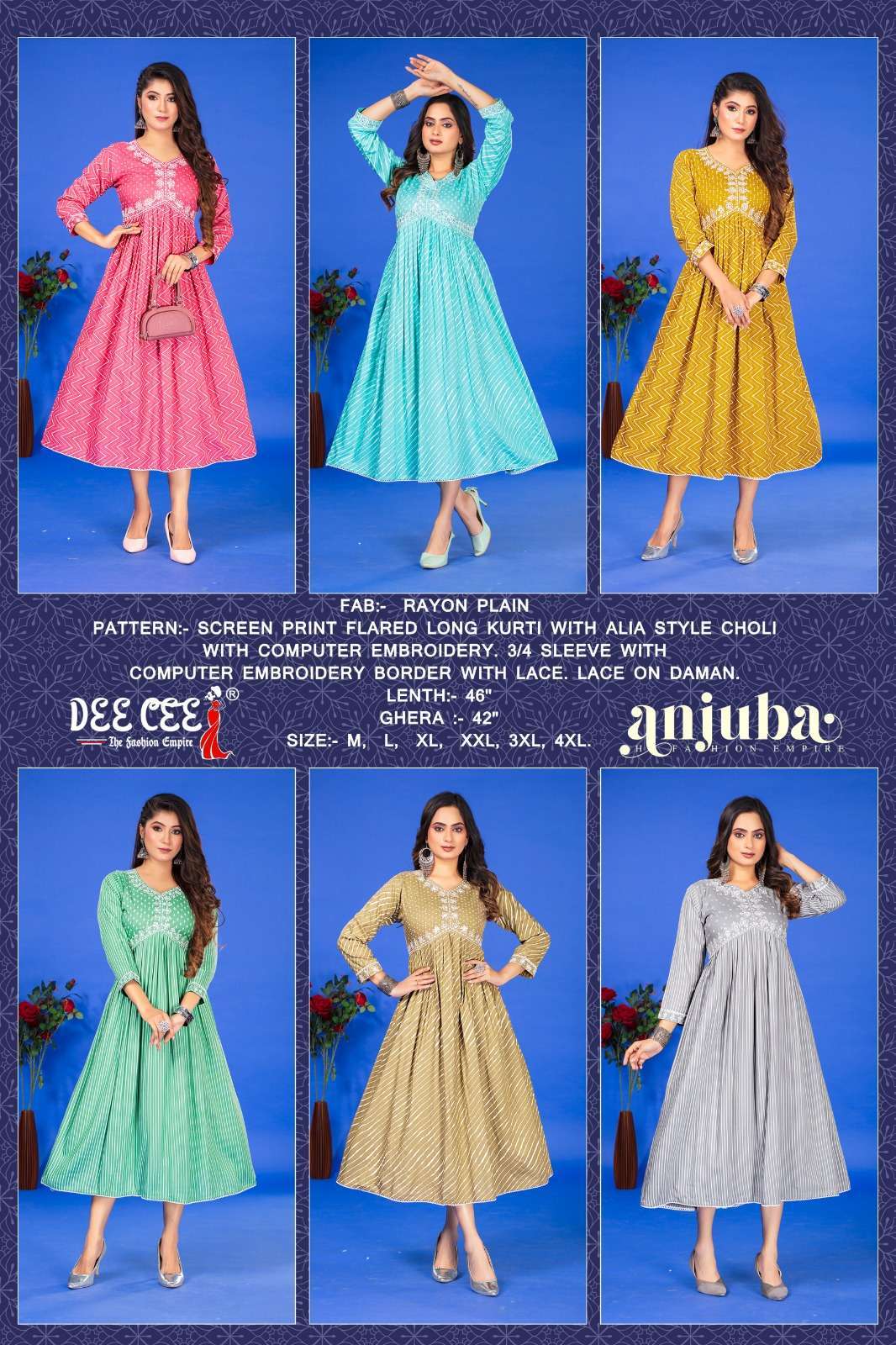| Name: | dee cee-ANJUBA SERIES 101 TO 106 KURTI BY DEE CEE |