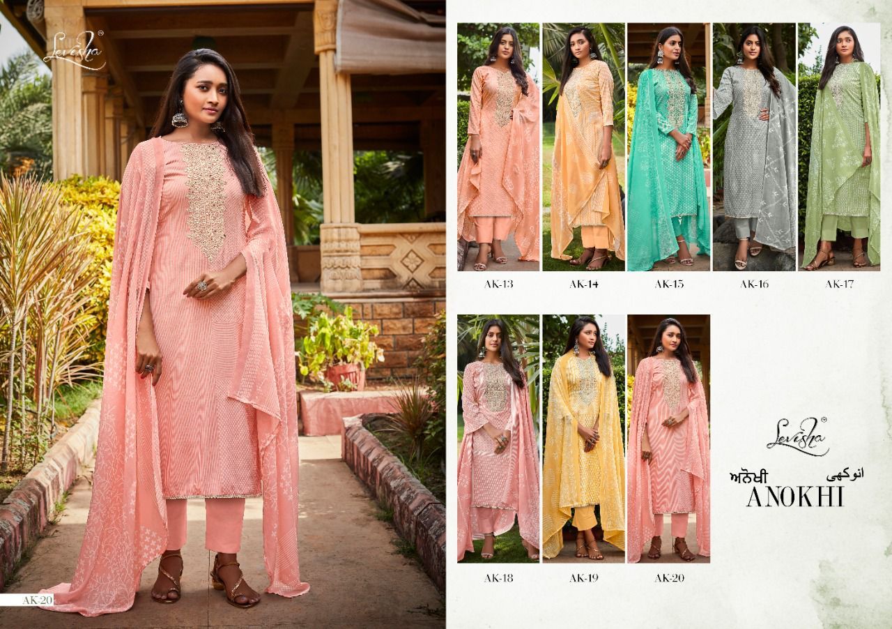 Anokhi By Levisha Designer With Printed And Embroidery Work Cotton Suits Are Available At Wholesale Price