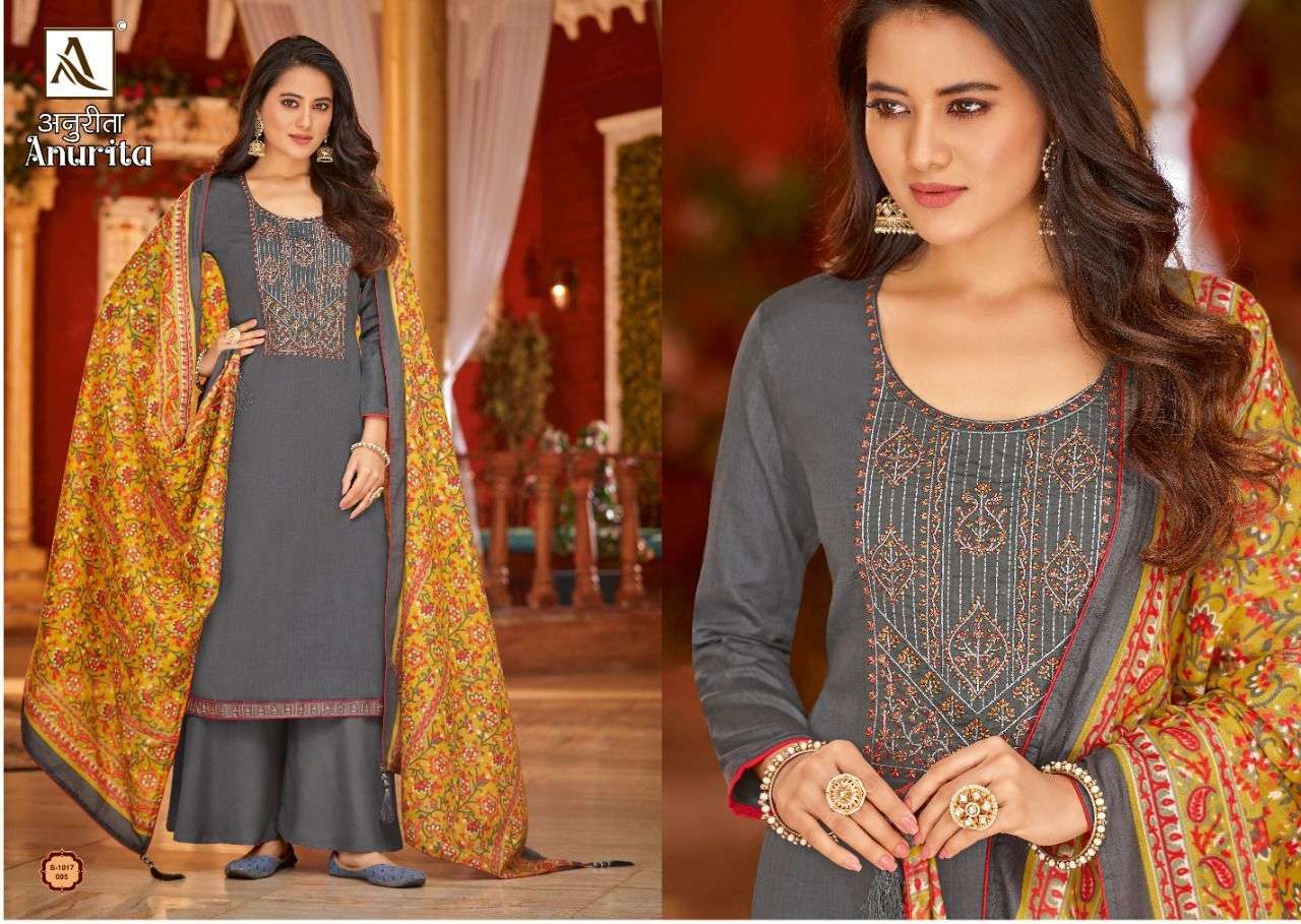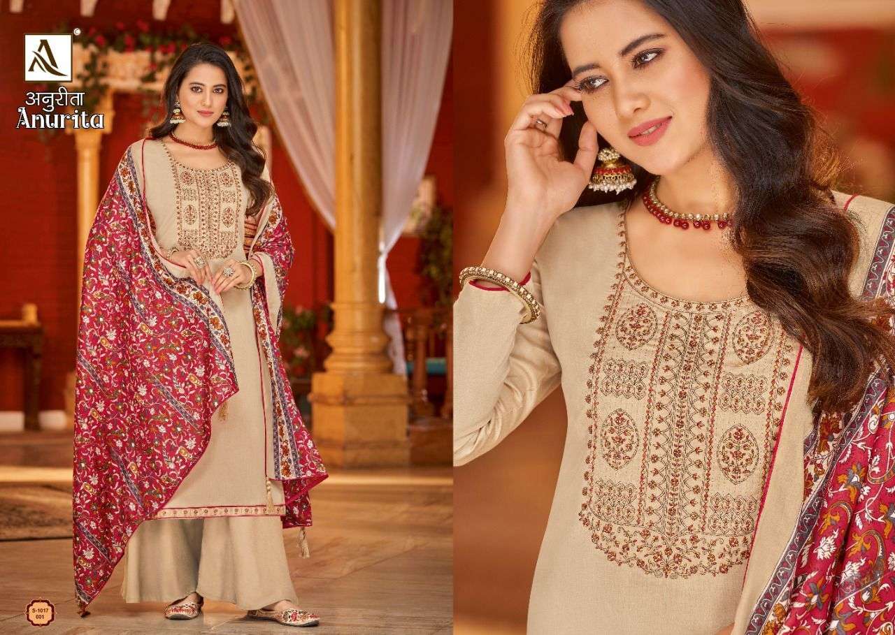ANURITA BY ALOK SUITS DESIGNER WITH PRINTED AND WORK PURE ZAM SUITS ARE AVAILABLE AT WHOLESALE PRICE