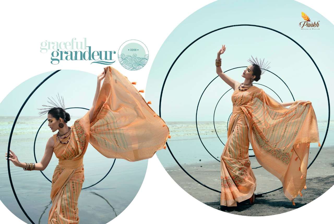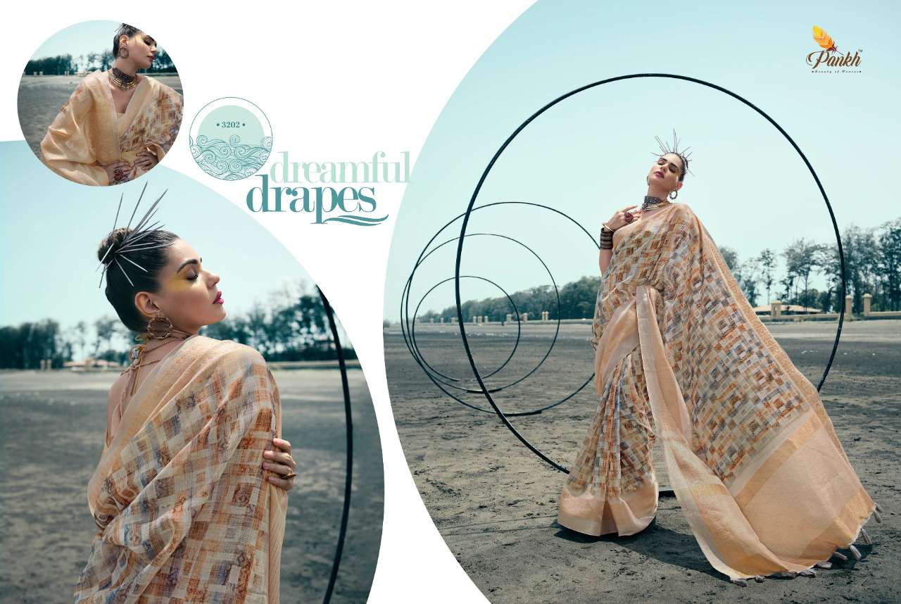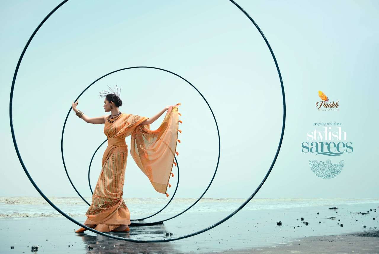 ARIYA SILK SAREE BY PANKH DESIGNER WITH PRINTED LINEN SILK SAREES ARE AVAILABLE AT WHOLESALE PRICE
