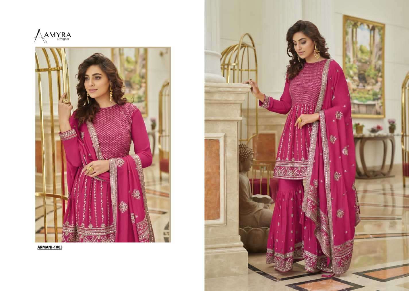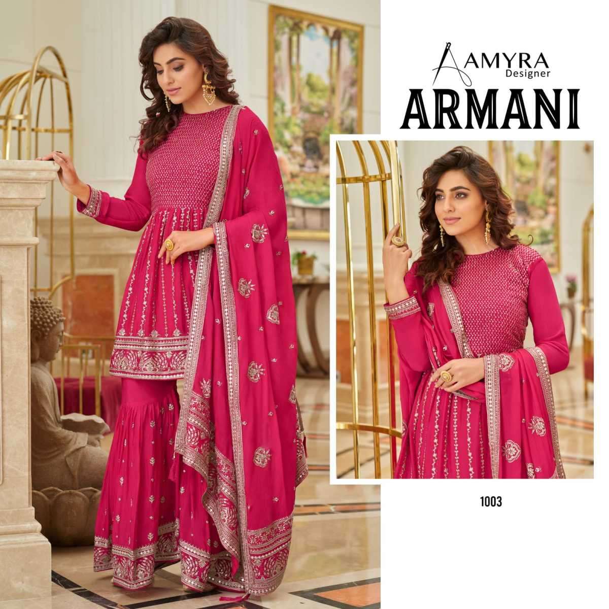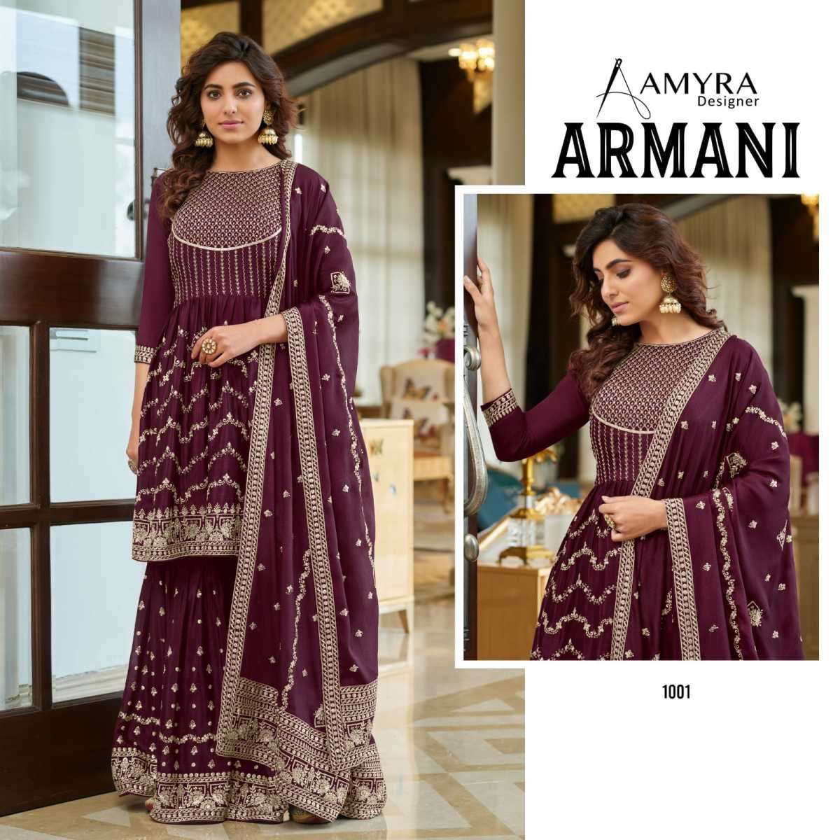 ARMANI BY AMYRA DESIGNER WITH HEAVY WORK CHINON SUITS ARE AVAILABLE IN SINGLES AT WHOLESALE PRICE