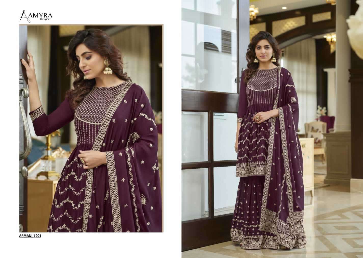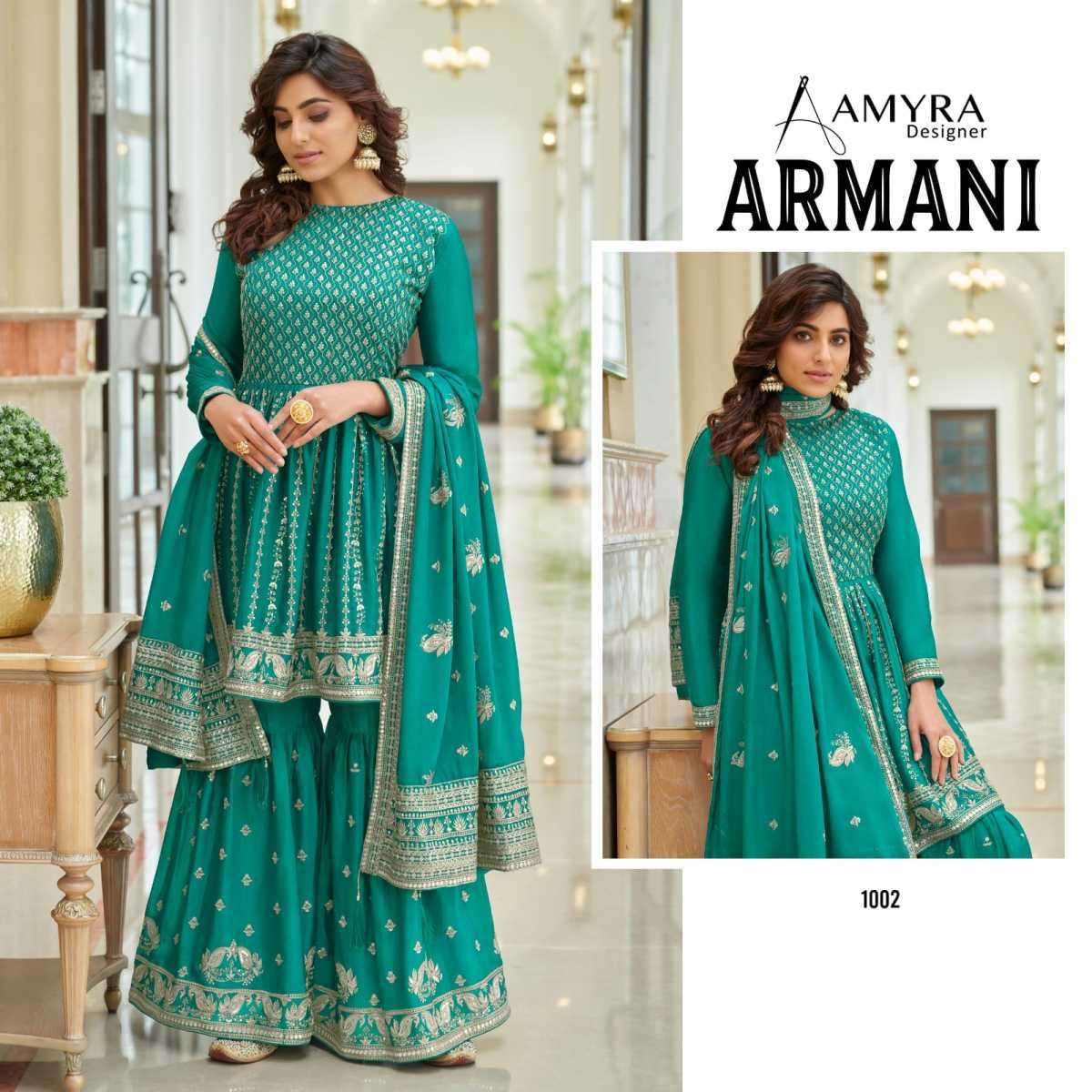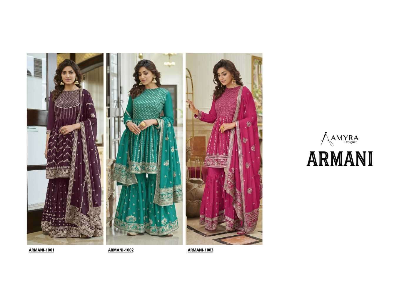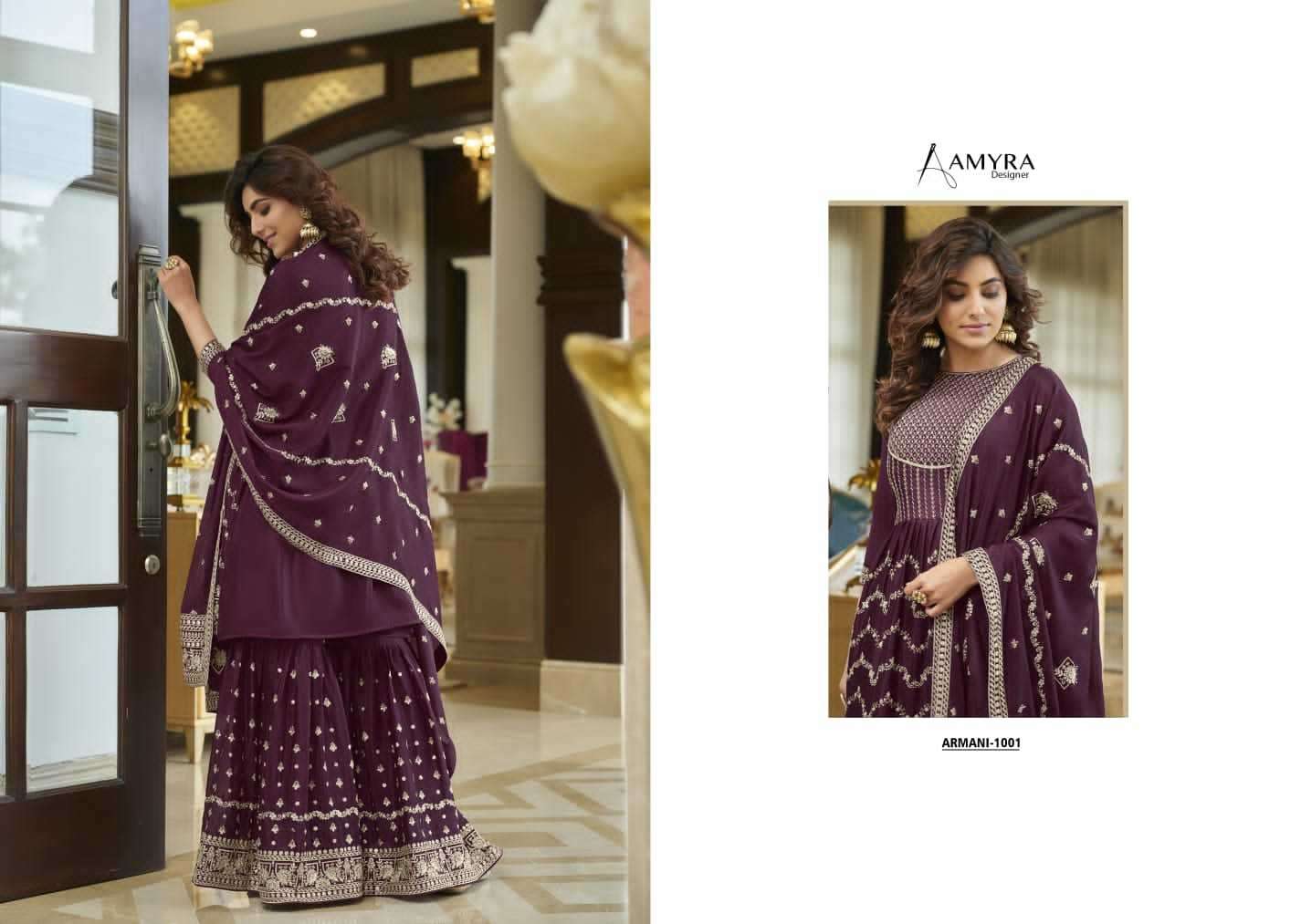 ARMANI BY AMYRA DESIGNER WITH HEAVY WORK CHINON SUITS ARE AVAILABLE IN SINGLES AT WHOLESALE PRICE