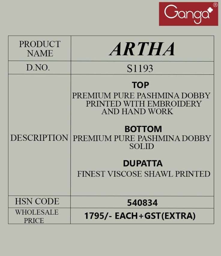 ARTHA BY GANGA DESIGNER WITH PEINTED AND HAND WORK PASHMINA DOBBY SUITS ARE AVAILABLE AT WHOLESALE PRICE