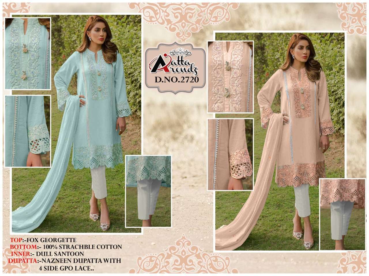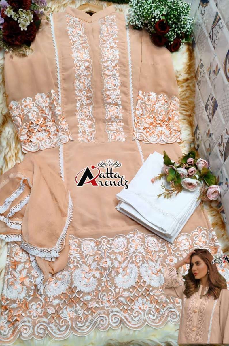 ATTA TRENDZ 2720 DESIGNER WITH WORK GEORGETTE PAKISTANI STYLE KURTI WITH PANT AND DUPATTA ARE AVAILABLE AT WHOLESALE PRICE