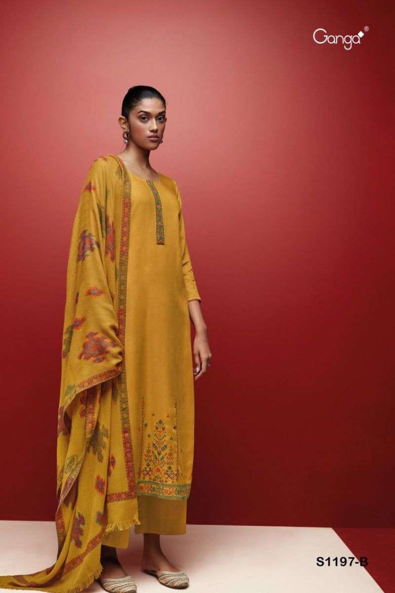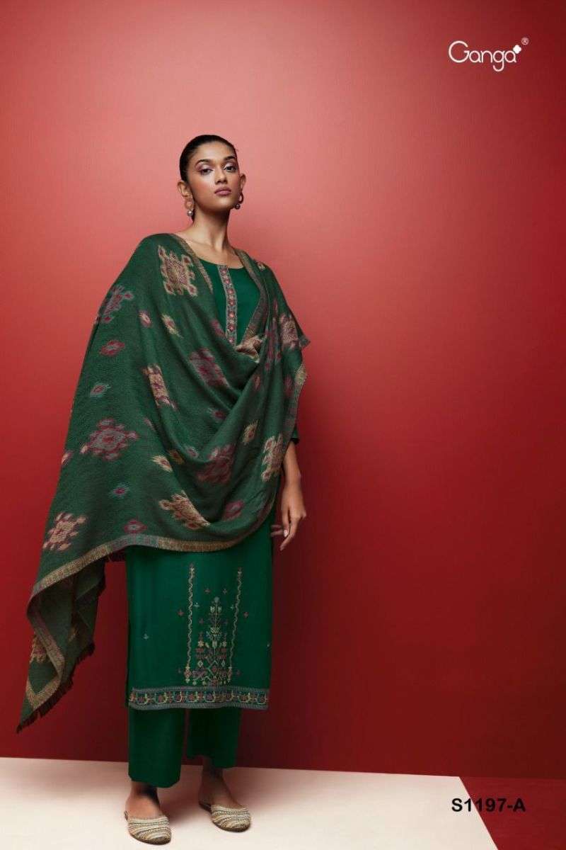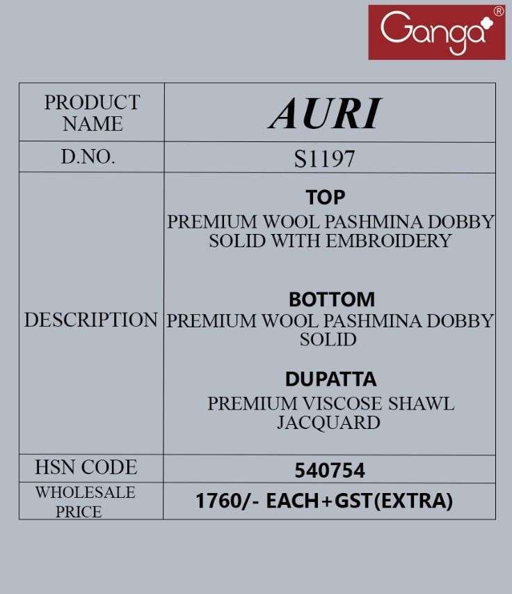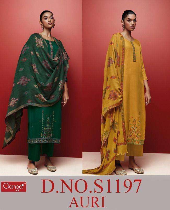 AURI S 1197 BY GANGA DESIGNER WITH EMBROIDERY WORK PASHMINA SUITS ARE AVAILABLE AT WHOLESALE PRICE
