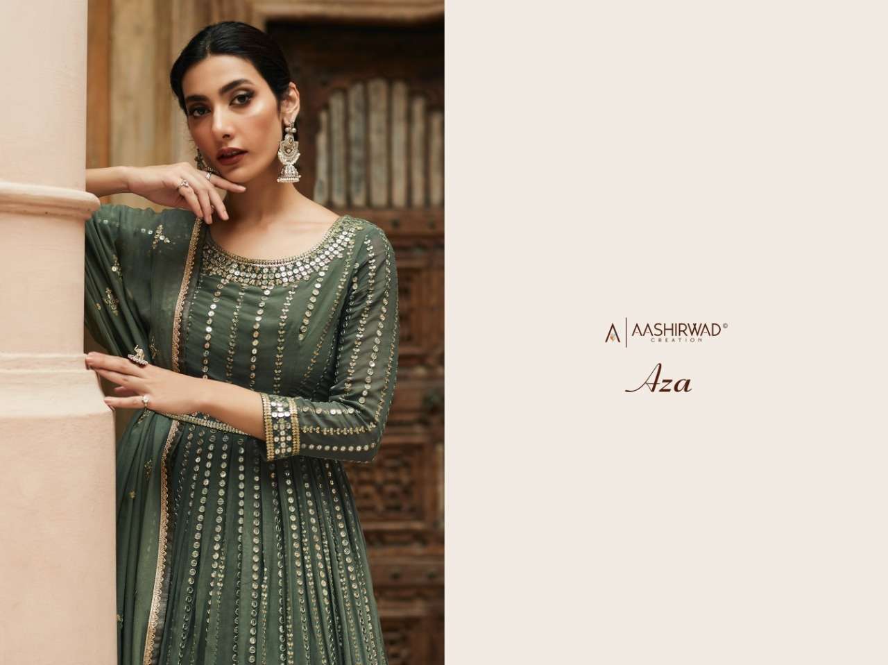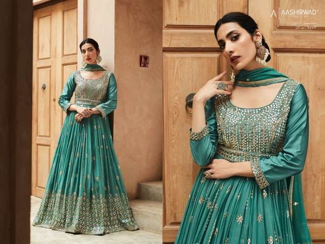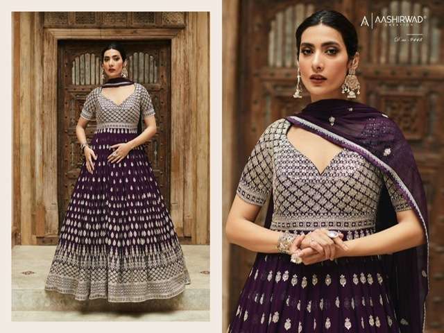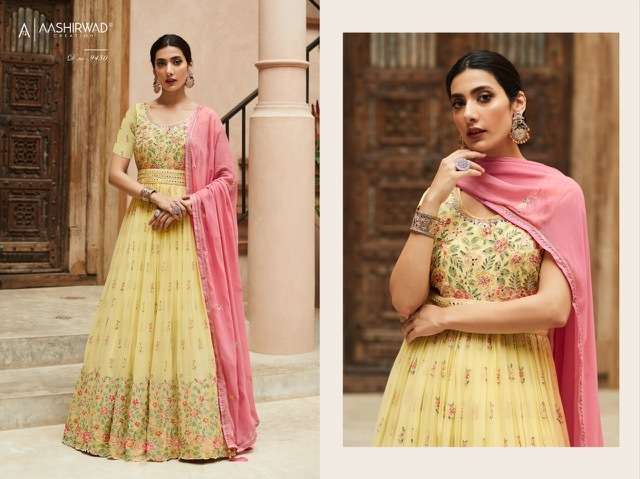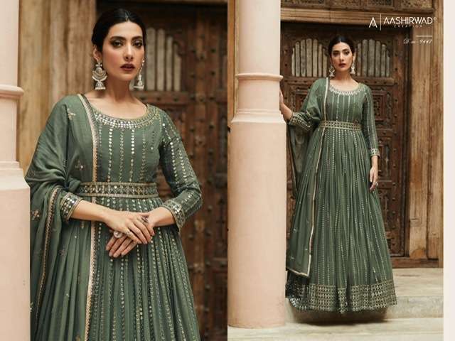 AZA BY AASHIRWAD DESIGNER WITH WORK READYMADE GEORGETTE SUITS ARE AVAILABLE IN SINGLES AT WHOLESALE PRICE