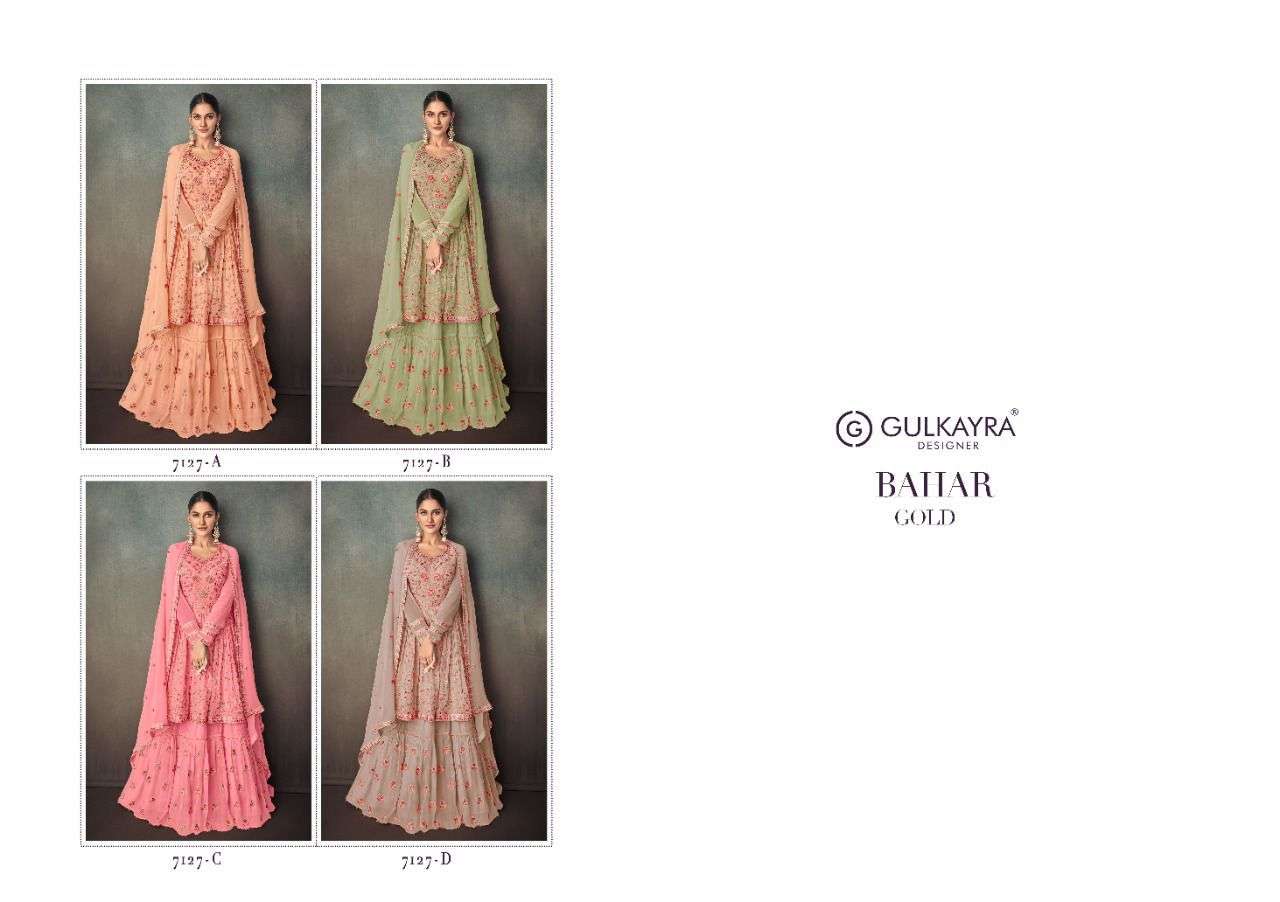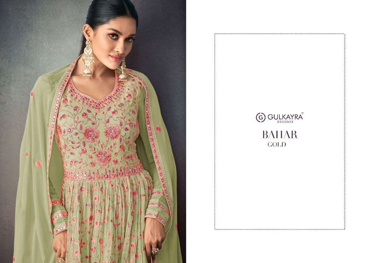 BAHAR GOLD BY GULKAYRA DESIGNER WITH WORK PARTY WEAR GEORGETTE SUITS ARE AVAILABLE IN SINGLES AT WHOLESALE PRICE