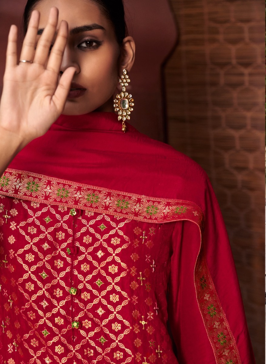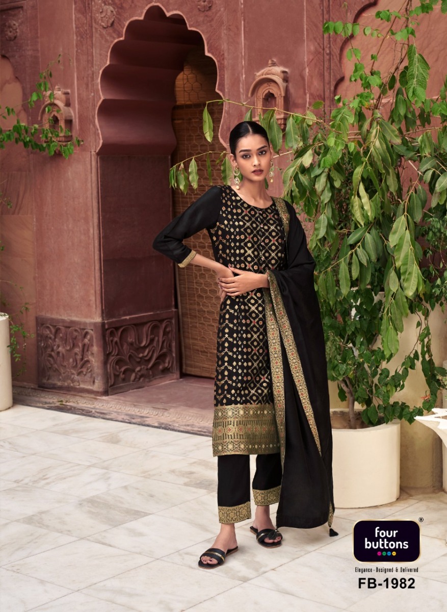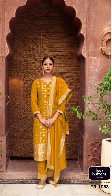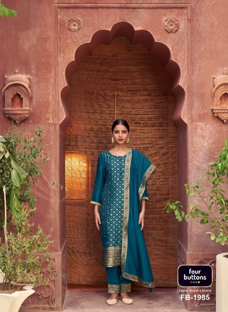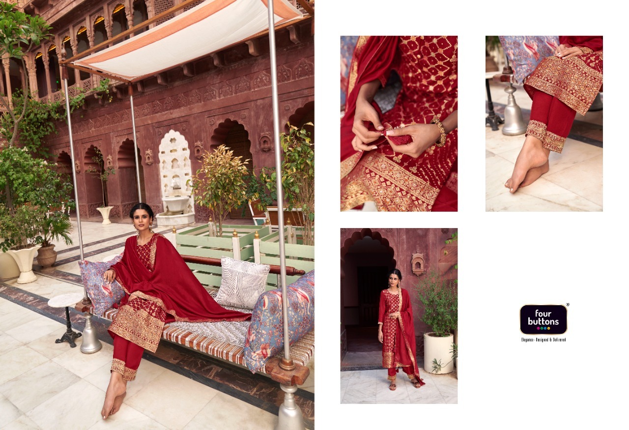 Banaras By Four Buttons Designer With Work Dola Silk Kurta With Bottom And Dupatta Are Available At Wholesale Price