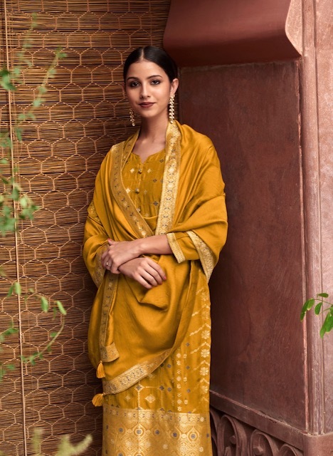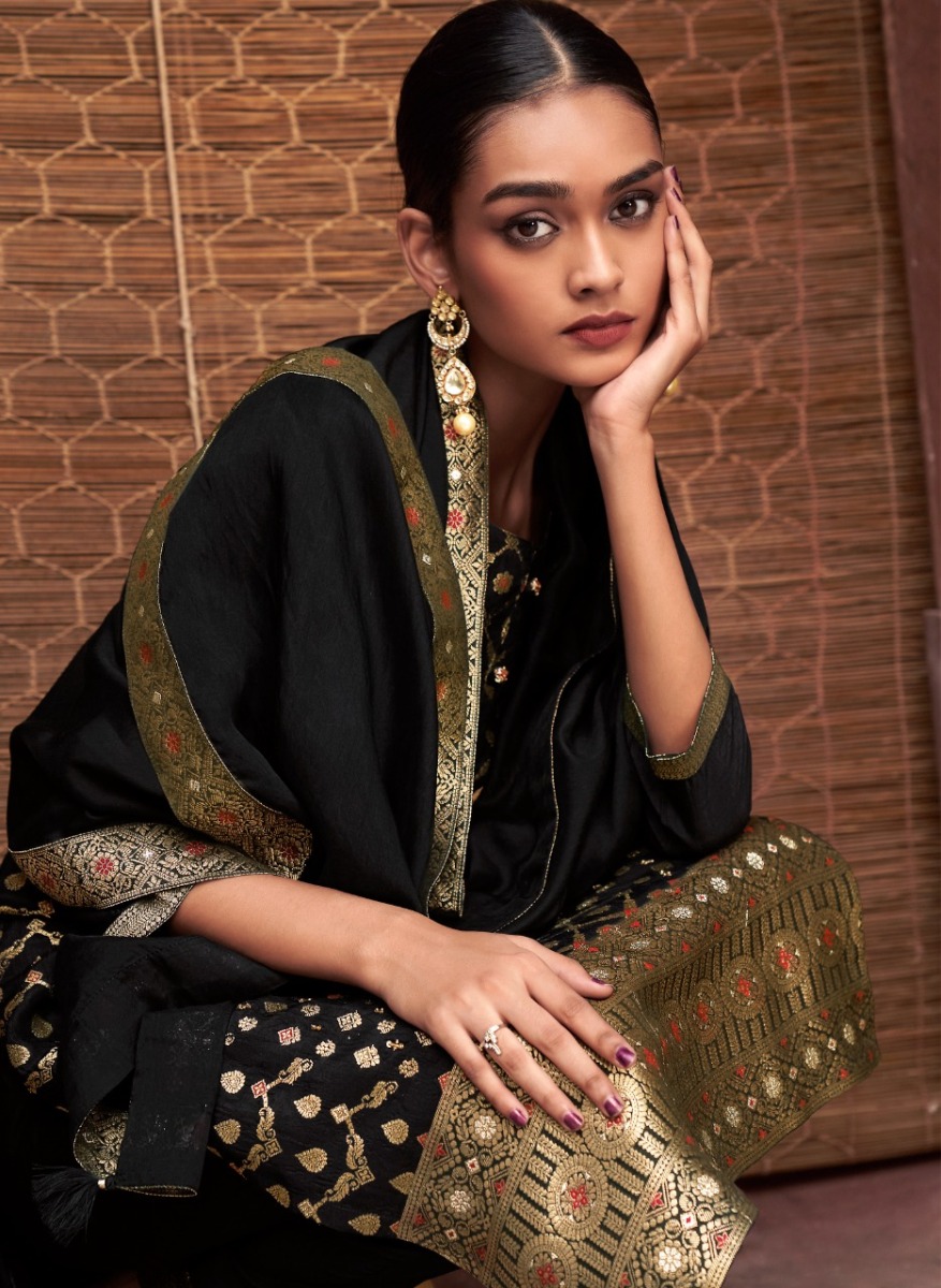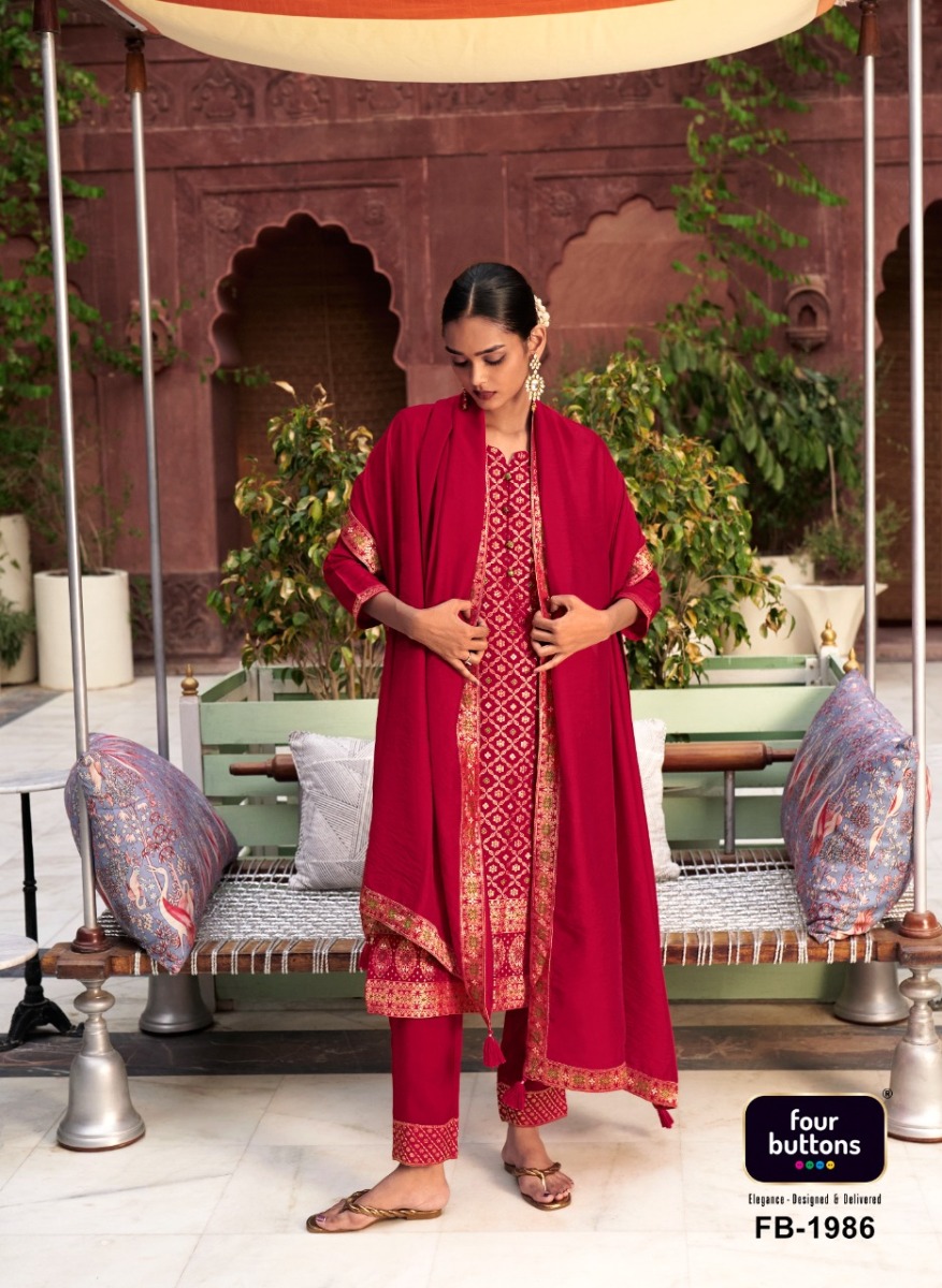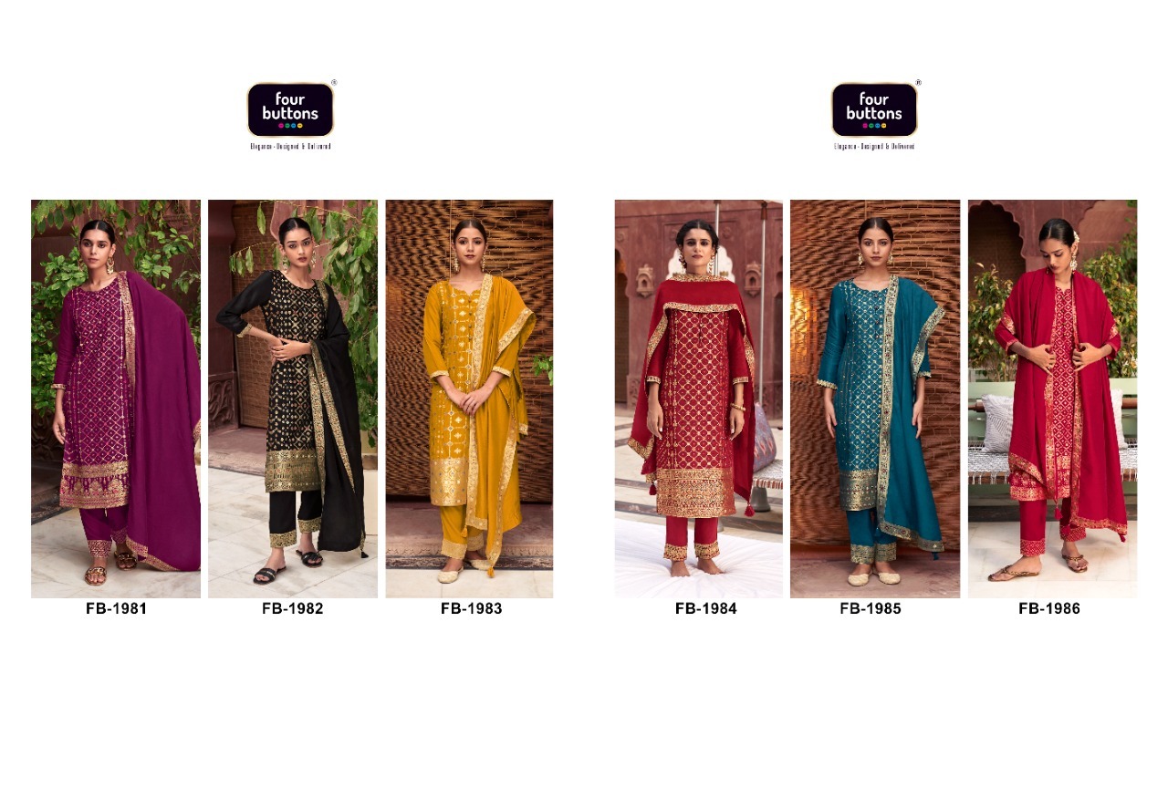 Banaras By Four Buttons Designer With Work Dola Silk Kurta With Bottom And Dupatta Are Available At Wholesale Price
