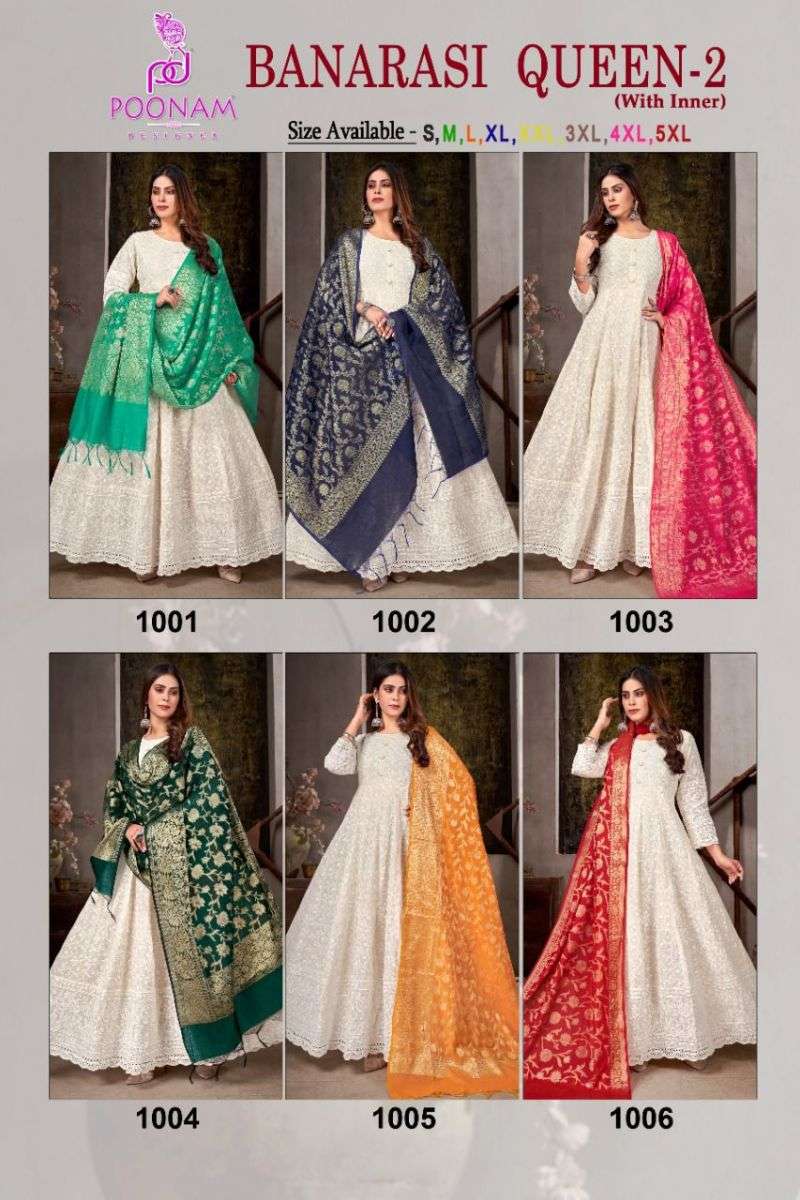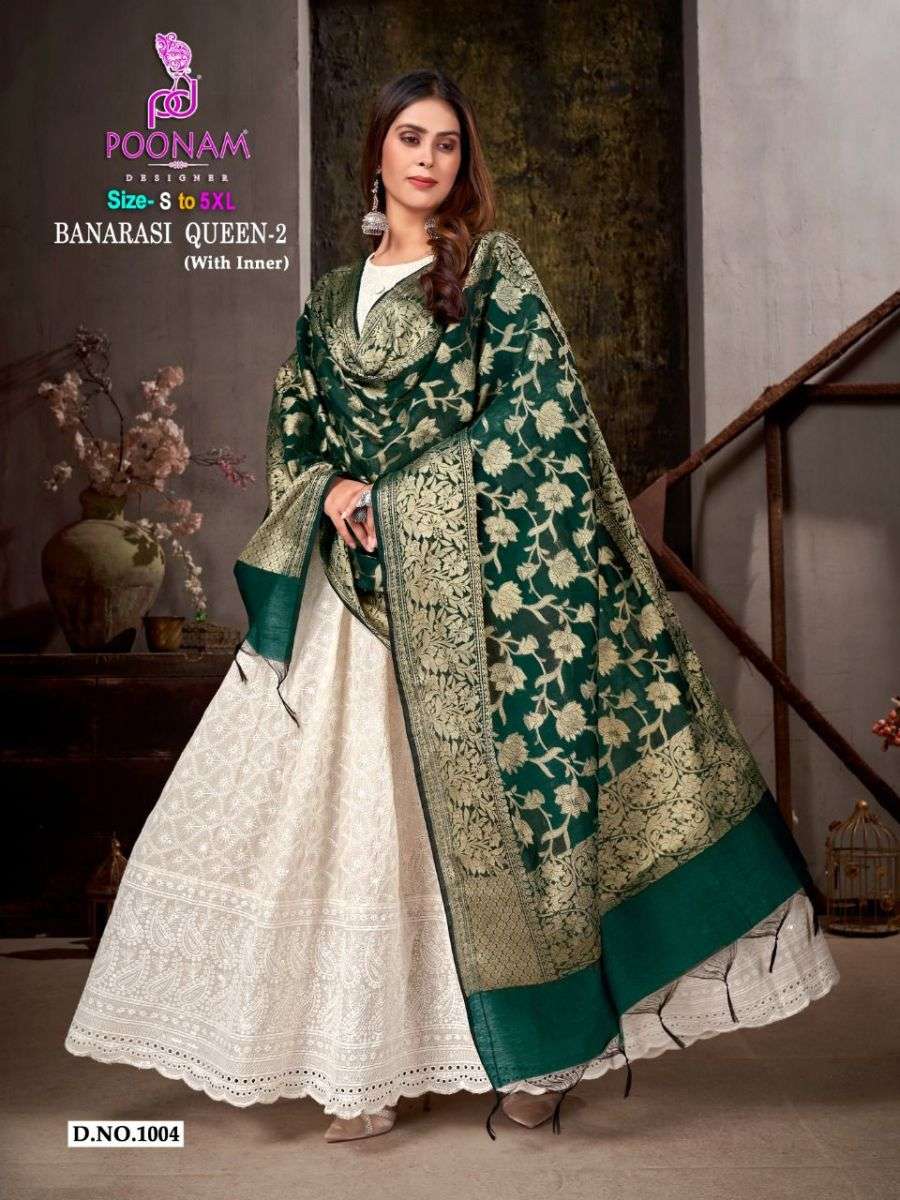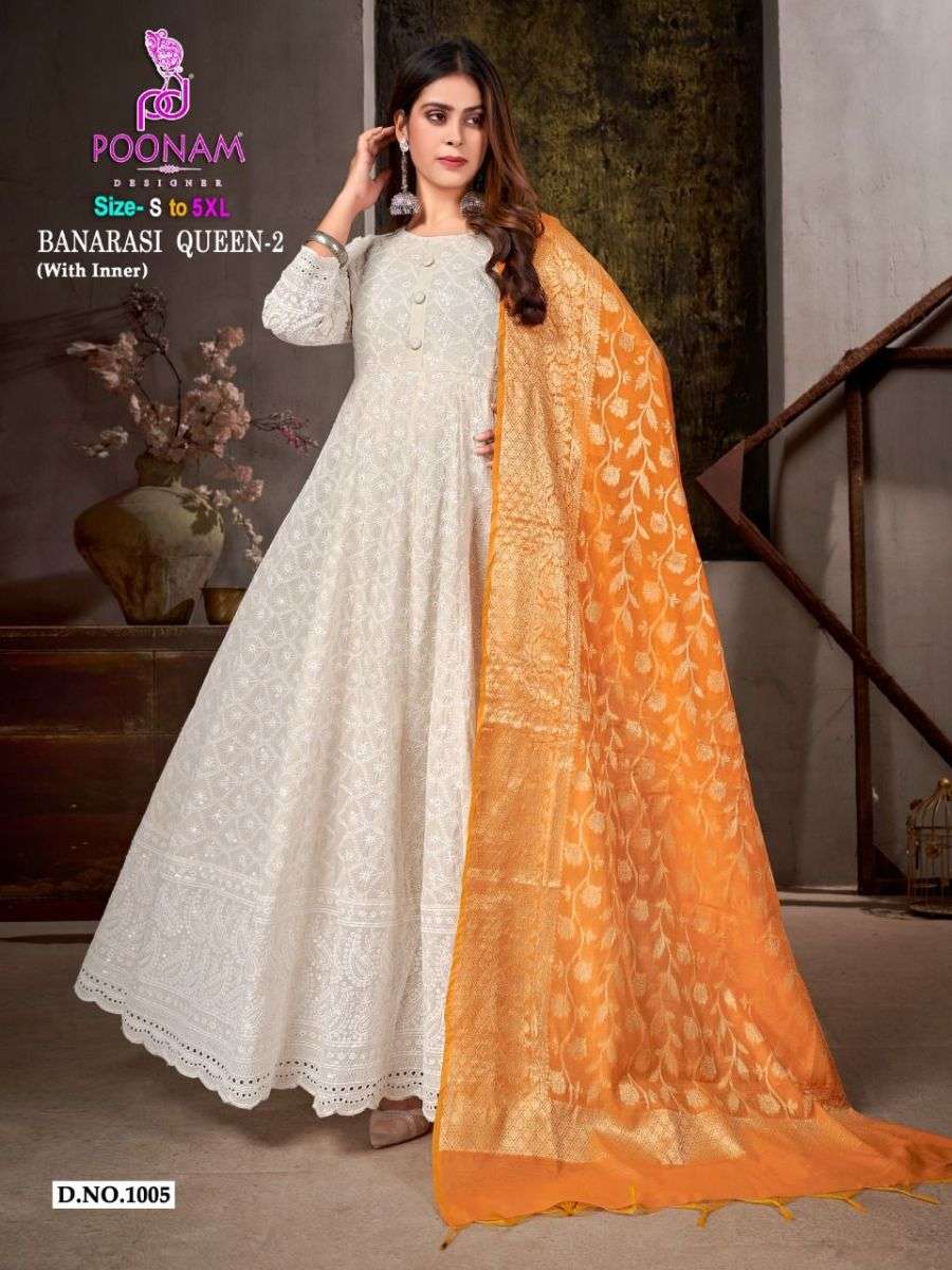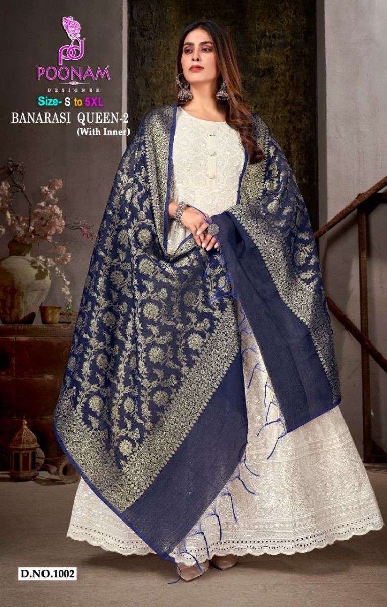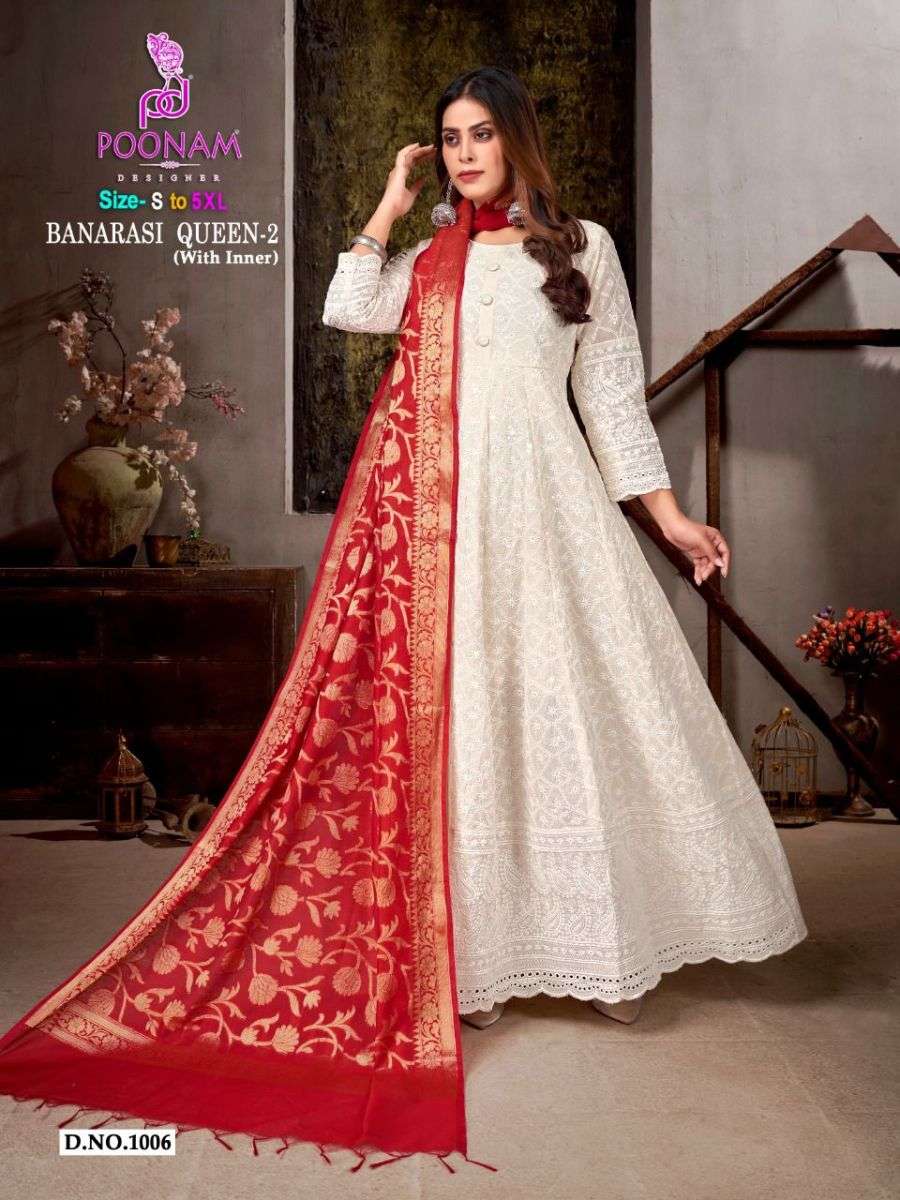 BANARASI QUEEN VOL-2 BY POONAM DESIGNER CHICKEN WORK COTTON GOWN WITH DUPATTA ARE AVAILABLE AT WHOLESALE PRICE