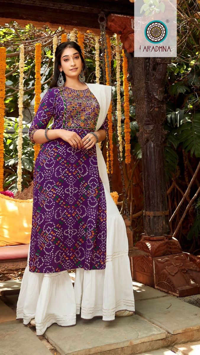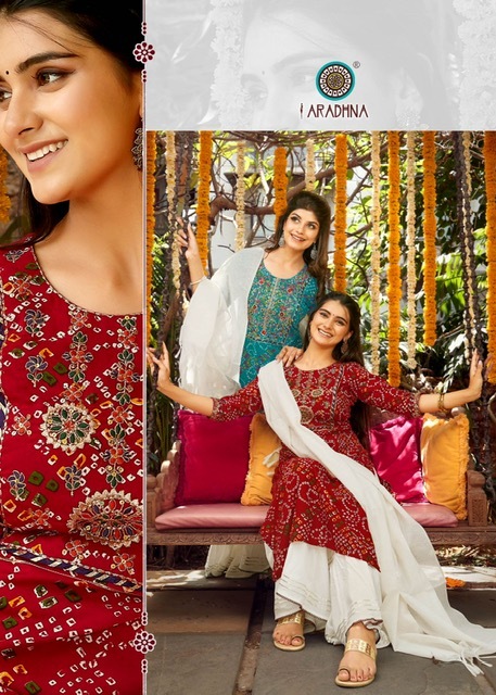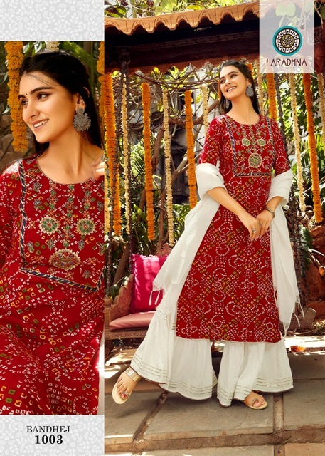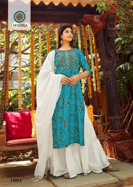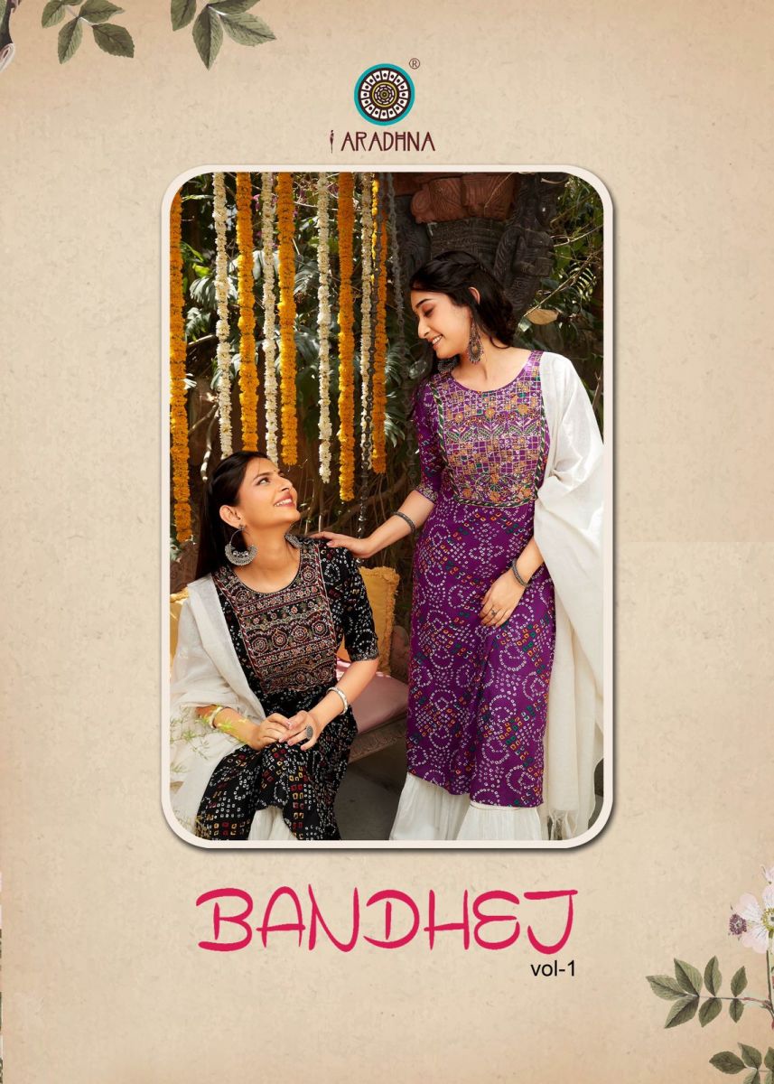 Bandhej Vol-1 By Aradhana Designer With Printed Rayon Kurti With Sharara And Dupatta Are Available At Wholesale Price
