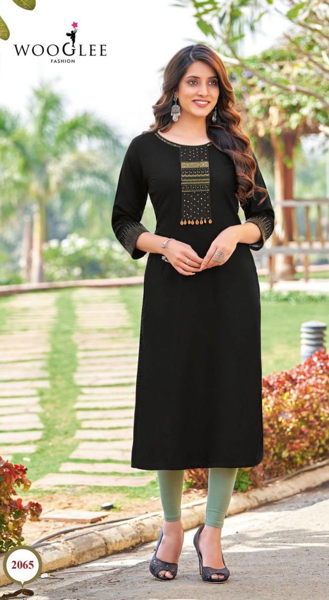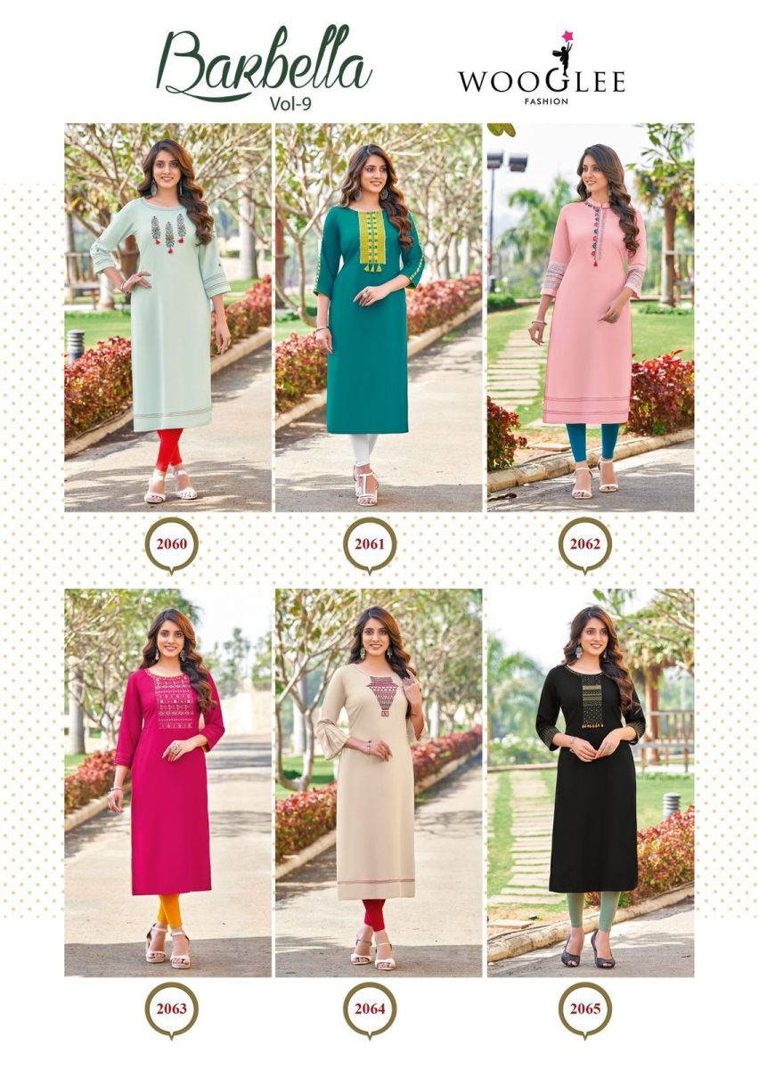 Barbella Vol-9 Kurti By Wooglee Designer With Embroidery Work Rayon Kurtis Are Available At Wholesale Price