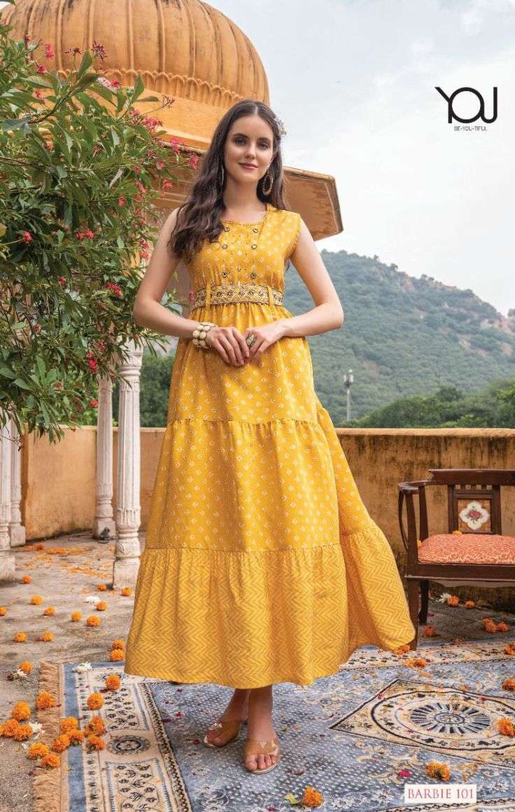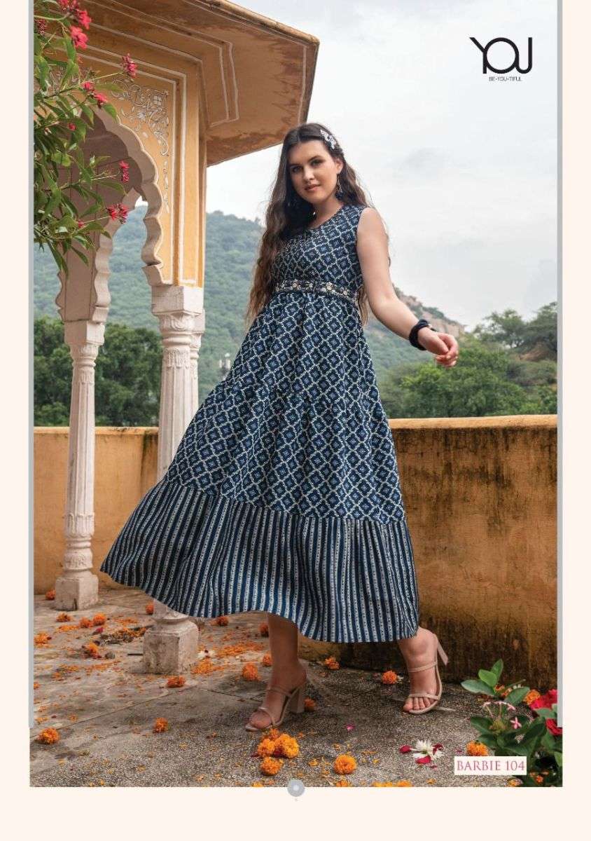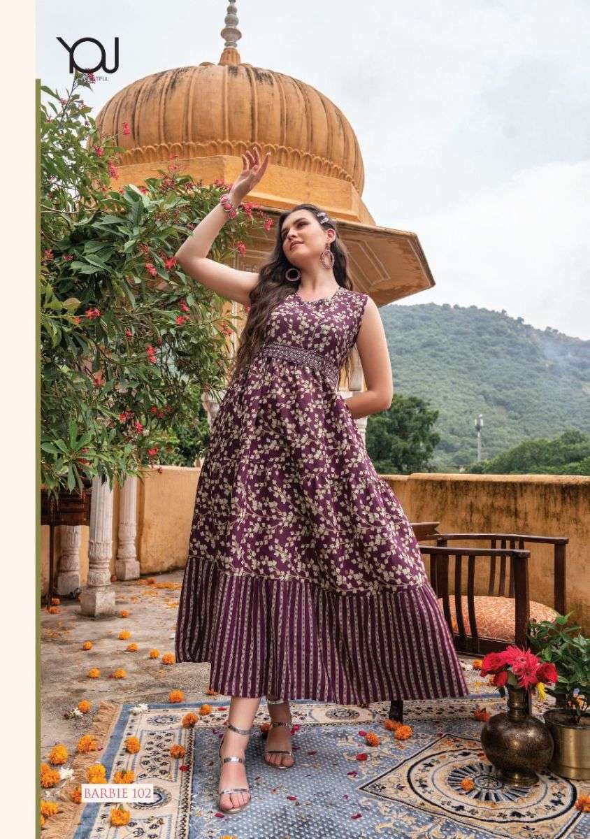 BARBIE KURTI BY YOU DESIGNER WITH PRINTED AND WORK GOWN STYLE MODAL KURTIS ARE AVAILABLE AT WHOLESALE PRICE