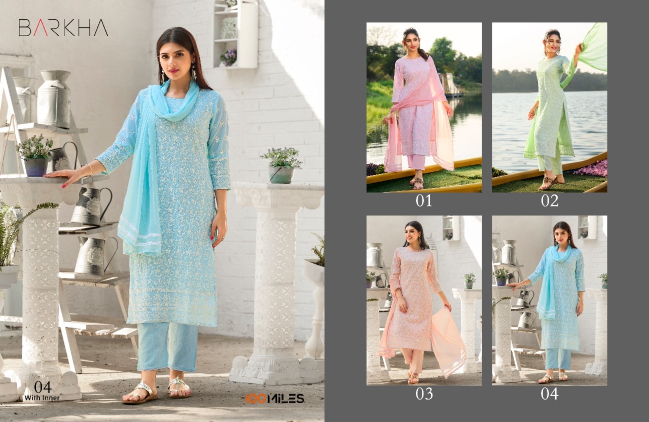 Barkha Kurti By 100 Miles Designer With Work Georgette Kurti With Bottom And Dupatta Are Available At Wholesale Price