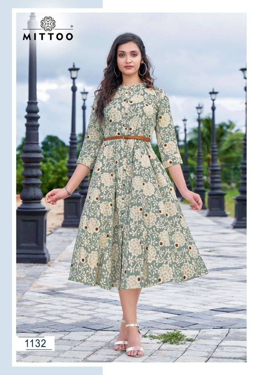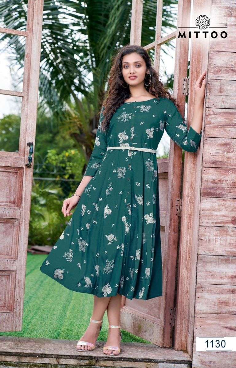BELT VOL-12 KURTI BY MITTO DESIGNER WITH PRINTED RAYON KURTIS ARE AVAILABLE AT WHOLESALE PRICE