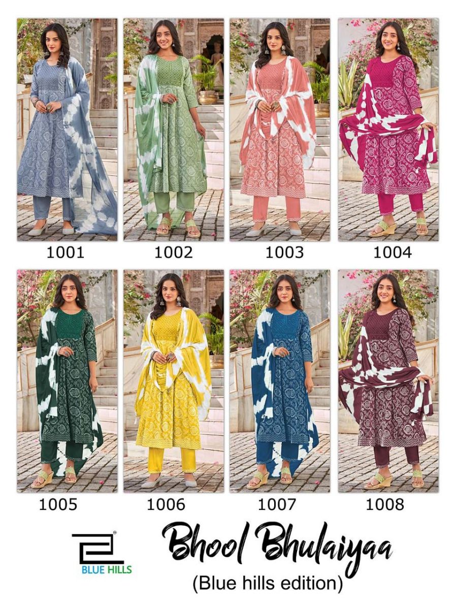 Bhool Bhulaiyaa Kurti By Blue Hills Designer With Printed Rayon Kurti With Pant And Dupatta Are Available At Wholesale Price