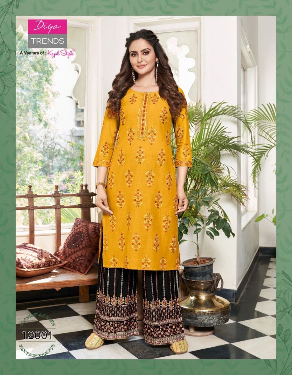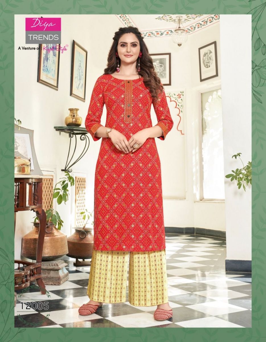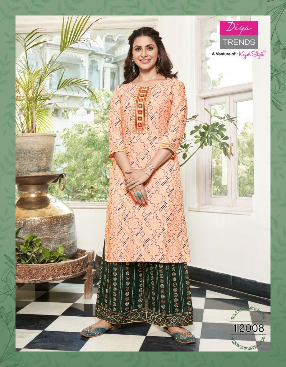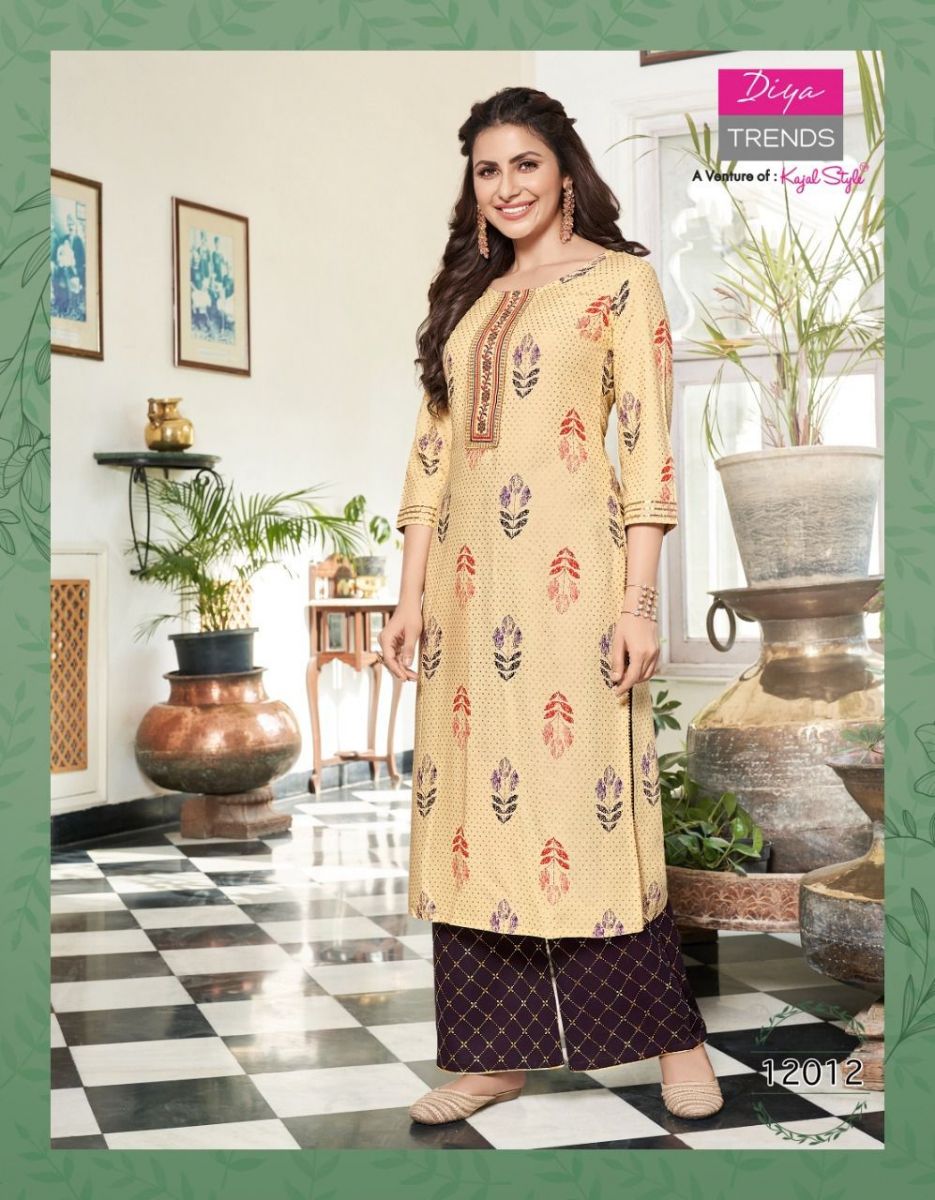 Bibas Vol-12 Kurti By Diya Trends Designer With Printed Rayon Kurti With Plazzo Bottom Are Available At Wholesale Price