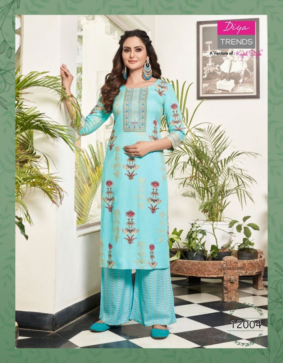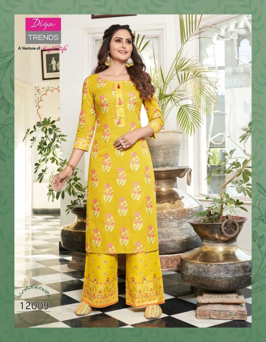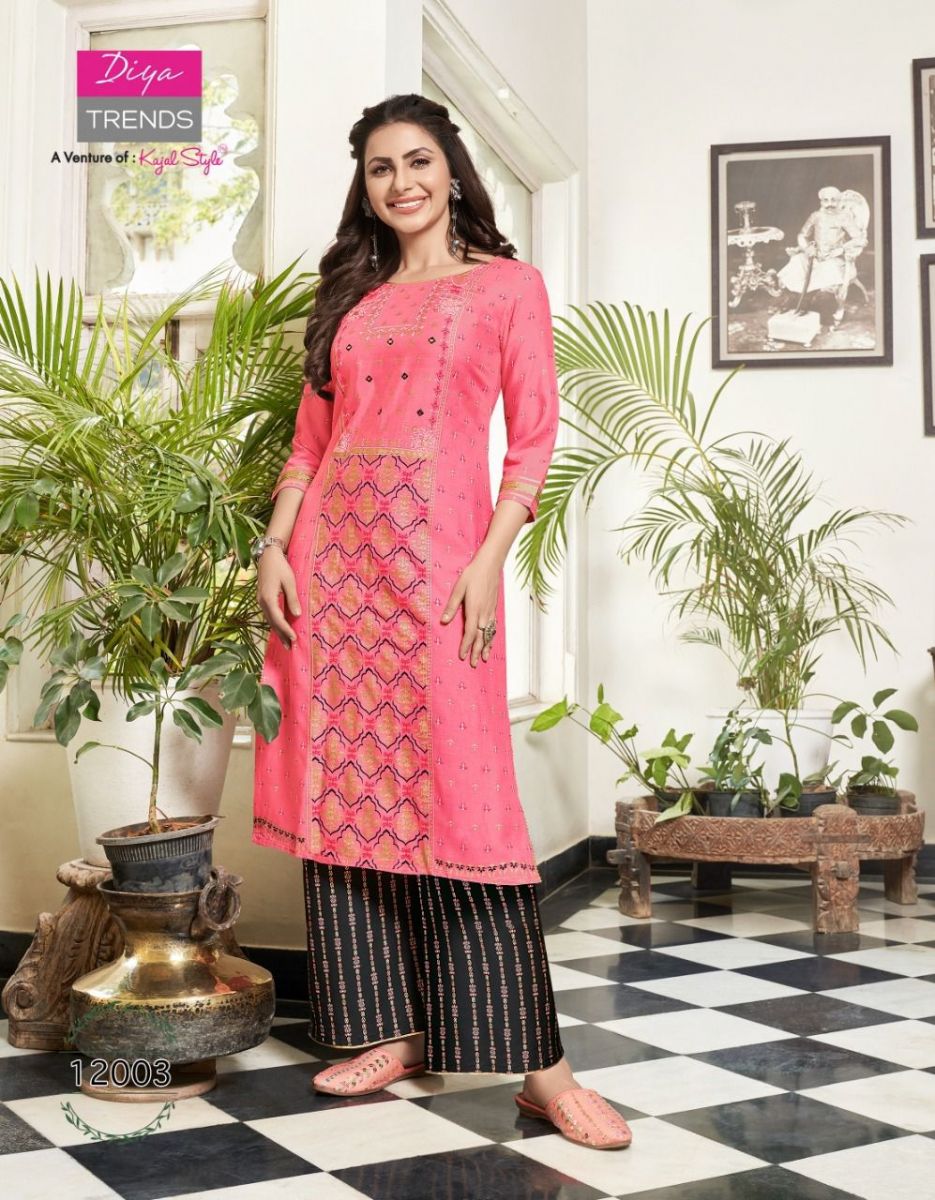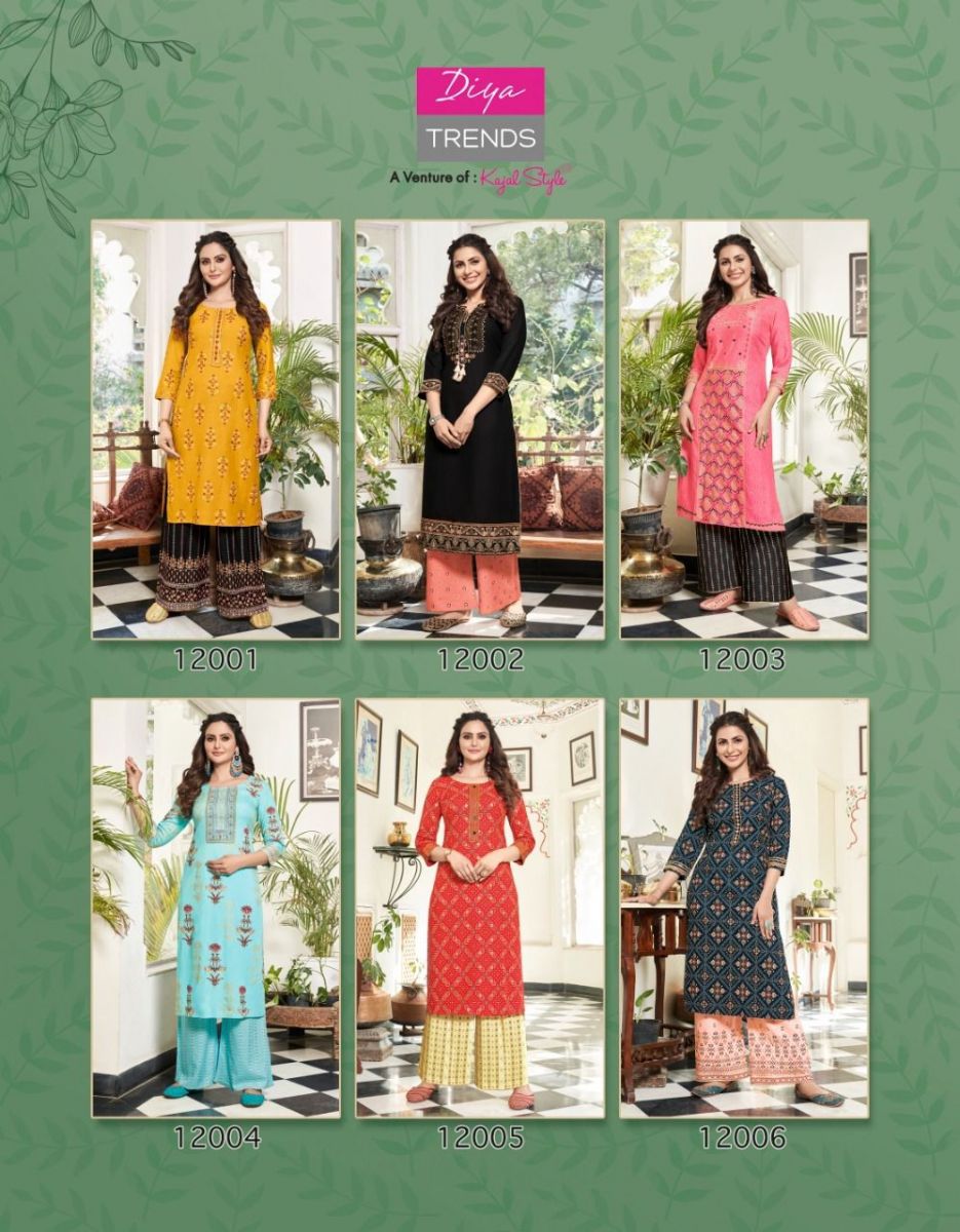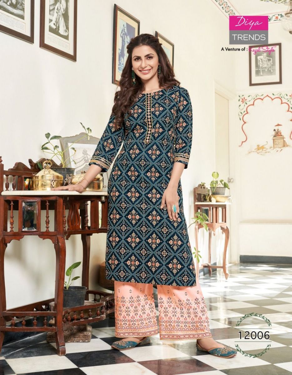 Bibas Vol-12 Kurti By Diya Trends Designer With Printed Rayon Kurti With Plazzo Bottom Are Available At Wholesale Price