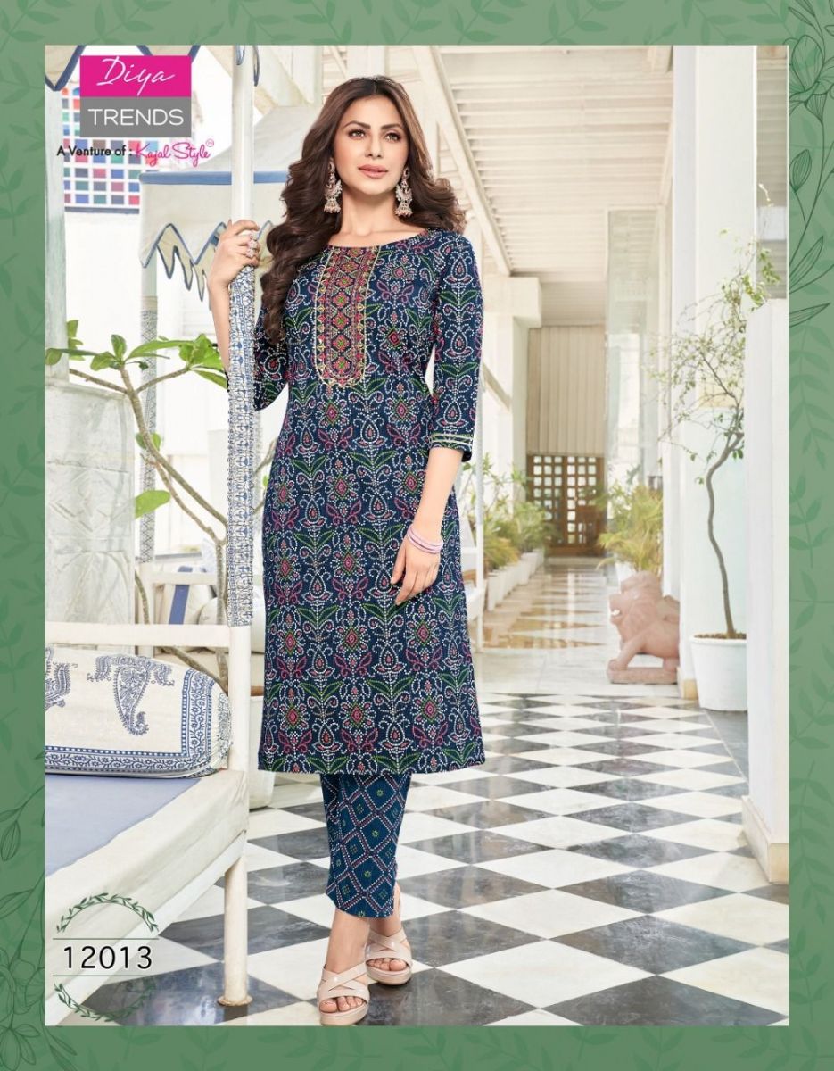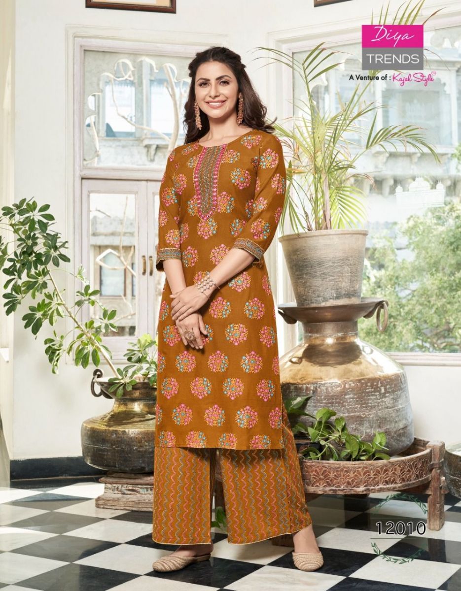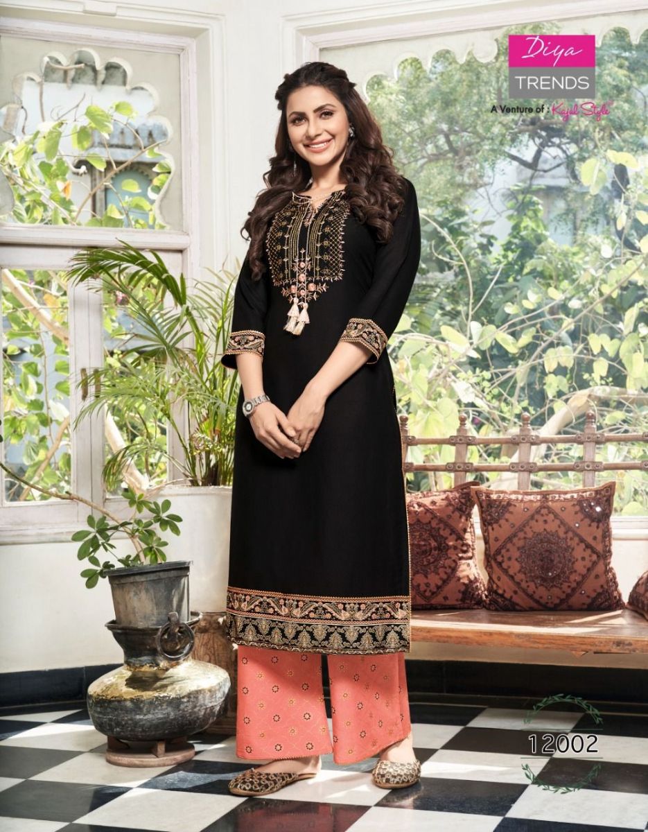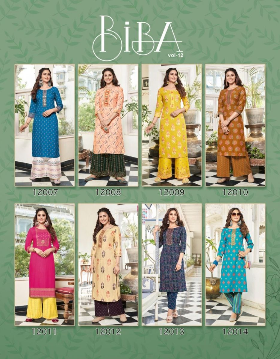 Bibas Vol-12 Kurti By Diya Trends Designer With Printed Rayon Kurti With Plazzo Bottom Are Available At Wholesale Price