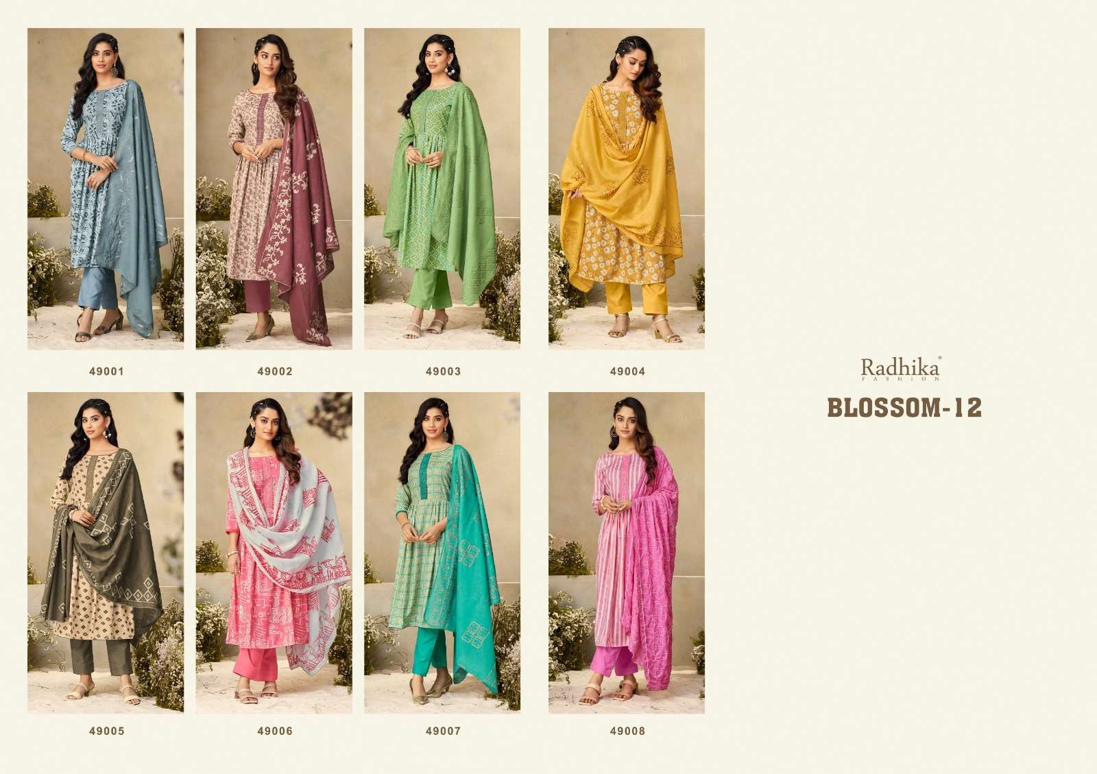 BLOSSOM VOL-12 BY RADHIKA AZARA DESIGNER WITH WORK AND FOIL PRINTED SUITS ARE AVAILABLE AT WHOLESALE PRICE