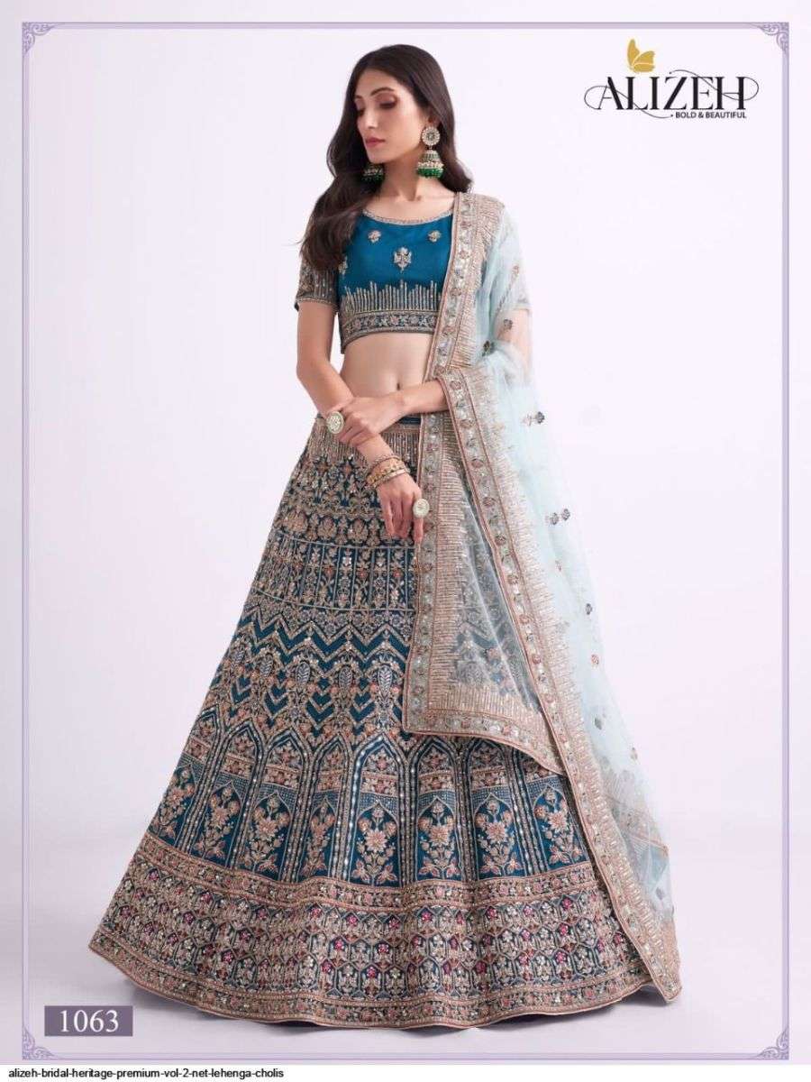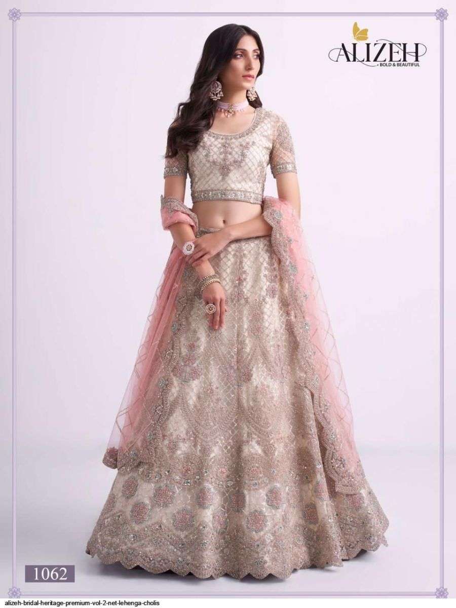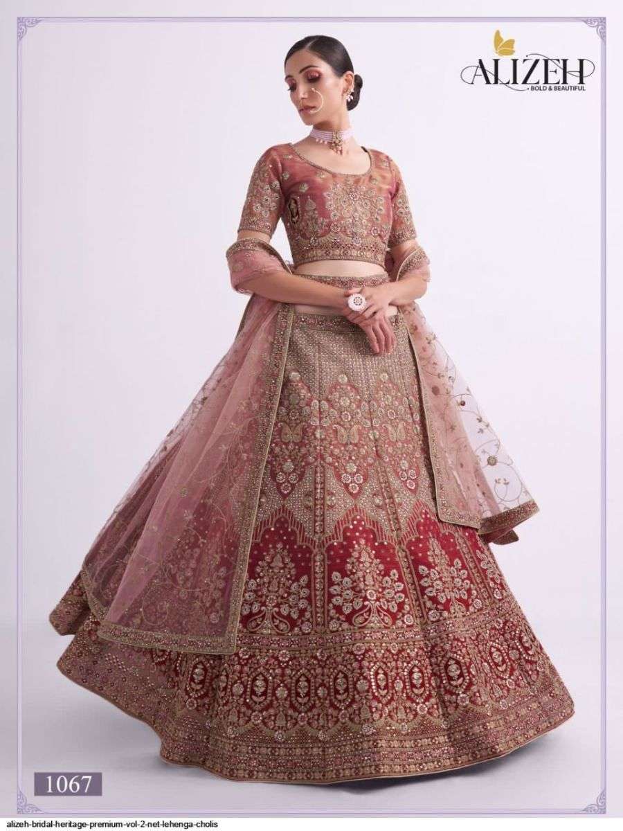 BRIDAL HERITAGE PREMIUM VOL-2 BY ALIZEH DESIGNER WITH HEAVY WORK BRIDAL WEAR LEHENGAS ARE AVAILABLE IN SINGLES AT WHOLESALE PRICE