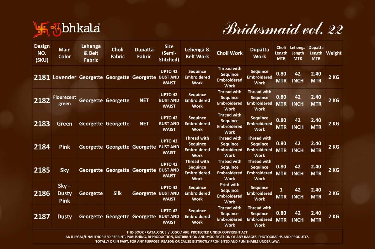 | Name: | shubhkala-BRIDESMAID VOL-22 SERIES 2181 TO 2187 BY SHUBHKALA |